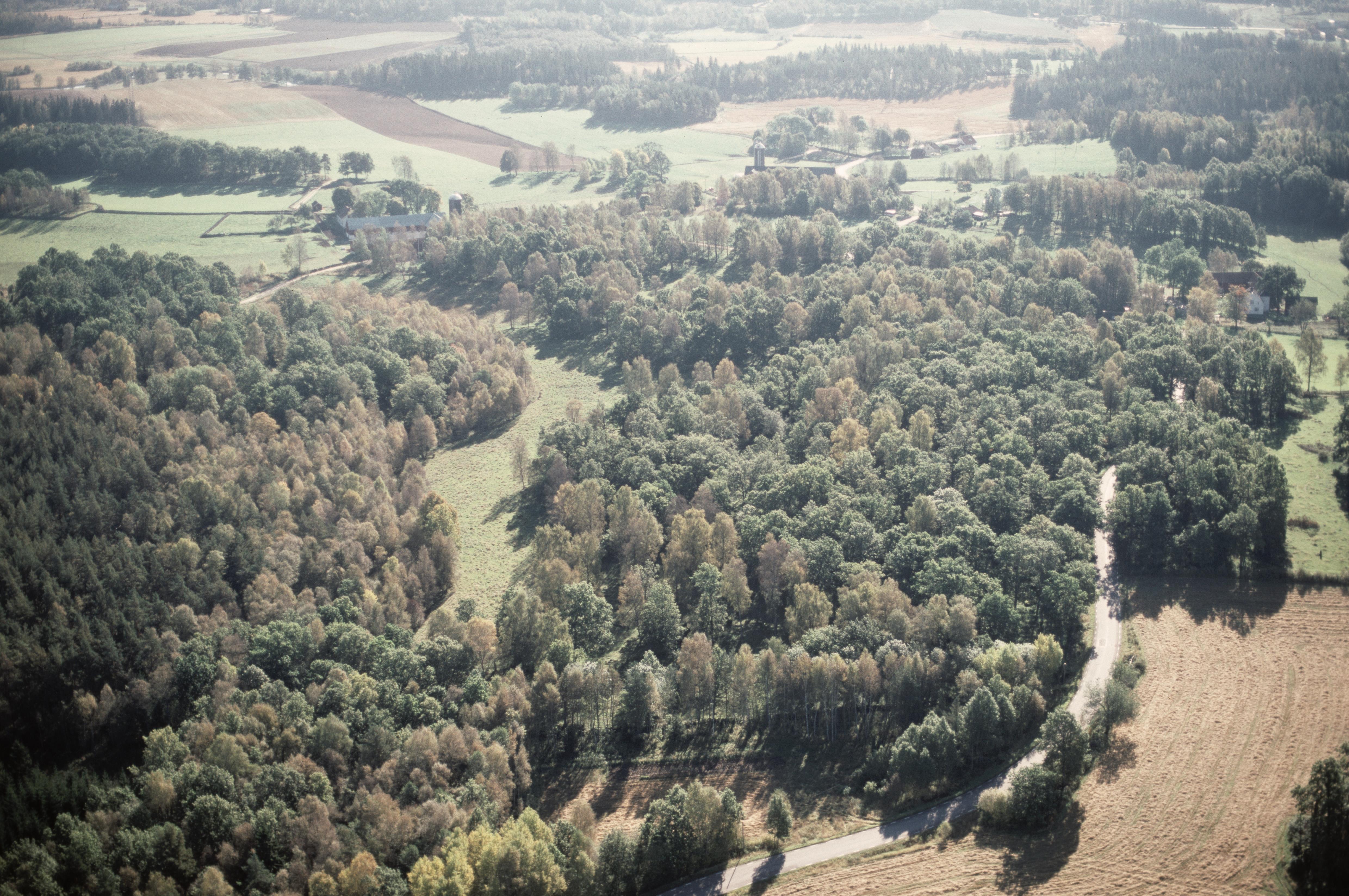 Beskrivning: Område med fossil åkermark RAÄnr Siene 203:1 i Järpås. Uppe till höger Klockaregården. Bilden är tagen mot (väderstreck): SO