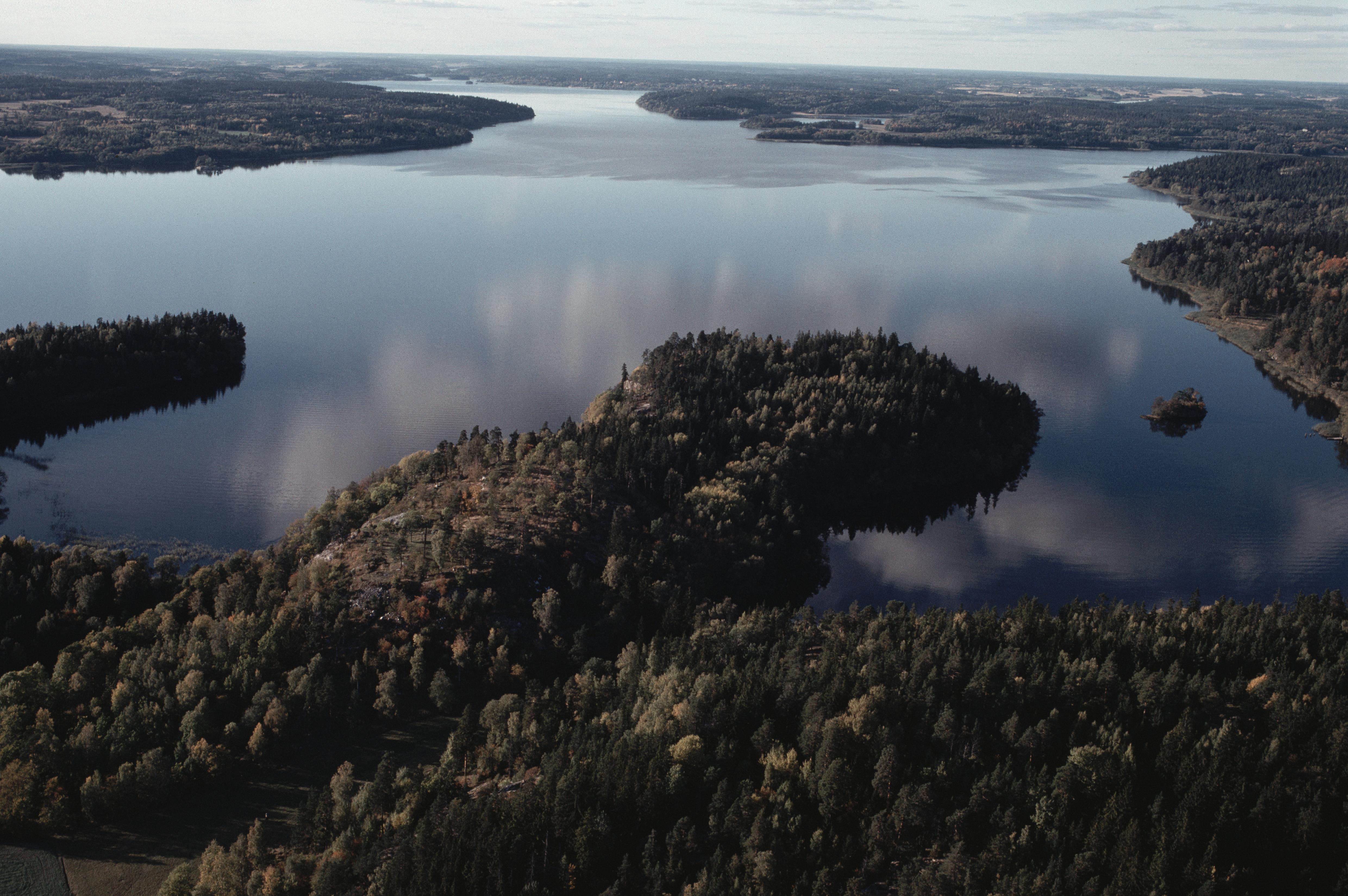 Beskrivning: Runsa fornborg / ?Runsa borg? RAÄnr Ed 2:1 vid bildens mitt. Norrsunda socken i bildens övre del. Bilden är tagen mot (väderstreck): NV