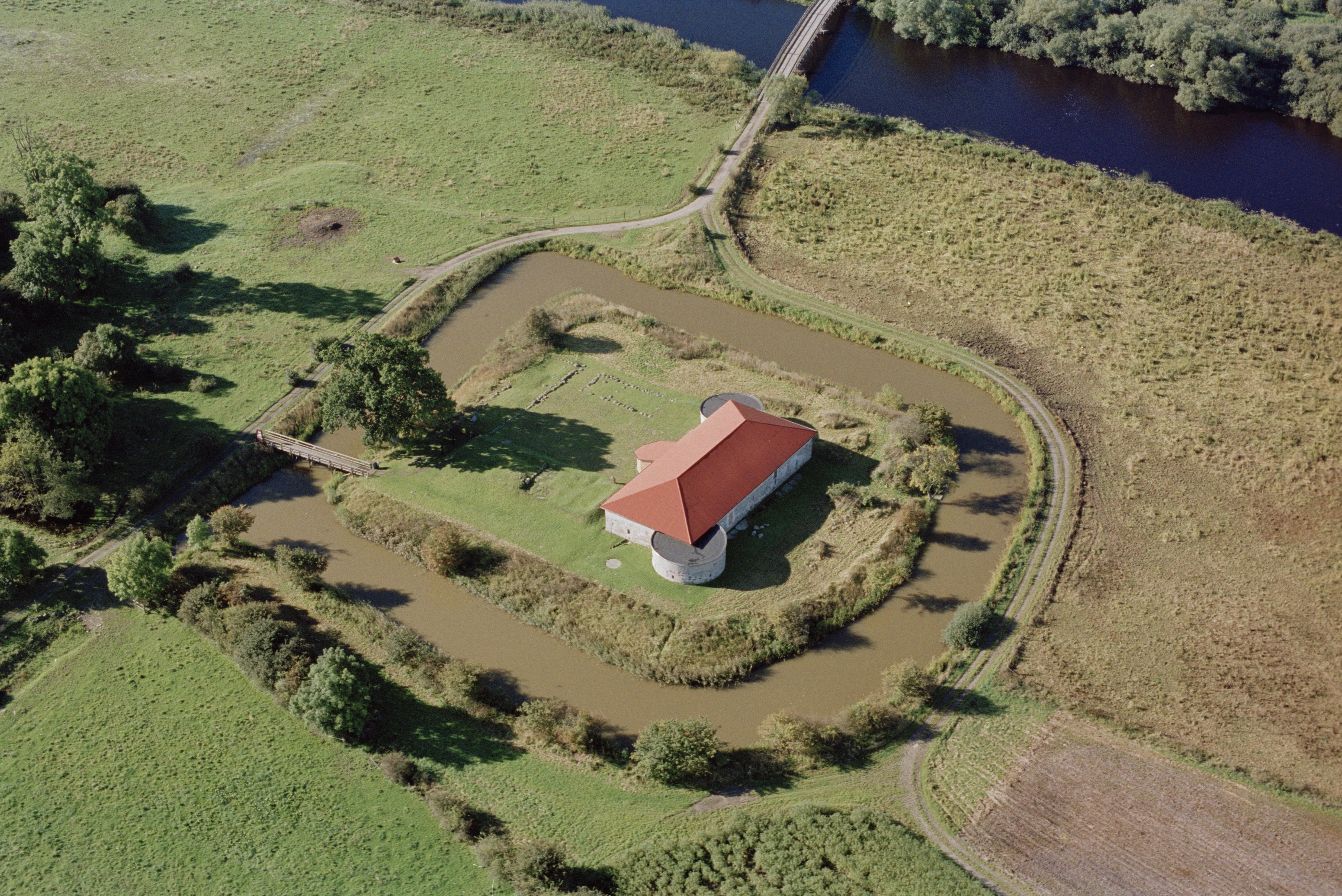 Beskrivning: Lillö borgruin / slottsruin RAÄnr Kristianstad 215:1 vid Helge å. Bilden är tagen mot (väderstreck): VSV