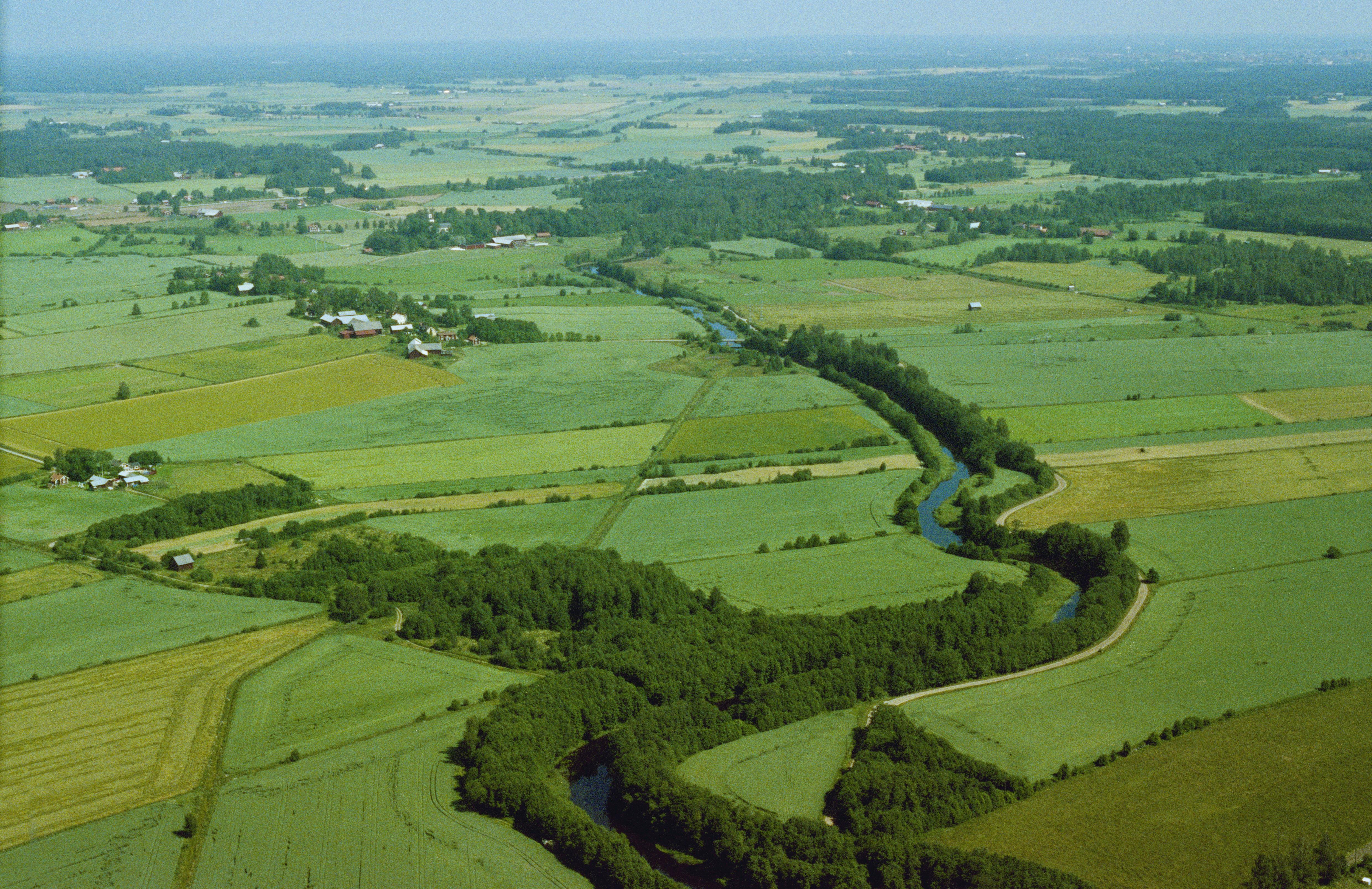 Beskrivning: Spånga by vid Svartån. Till vänster över bildens mitt Vintrosa kyrka. Bilden är tagen mot (väderstreck): NO