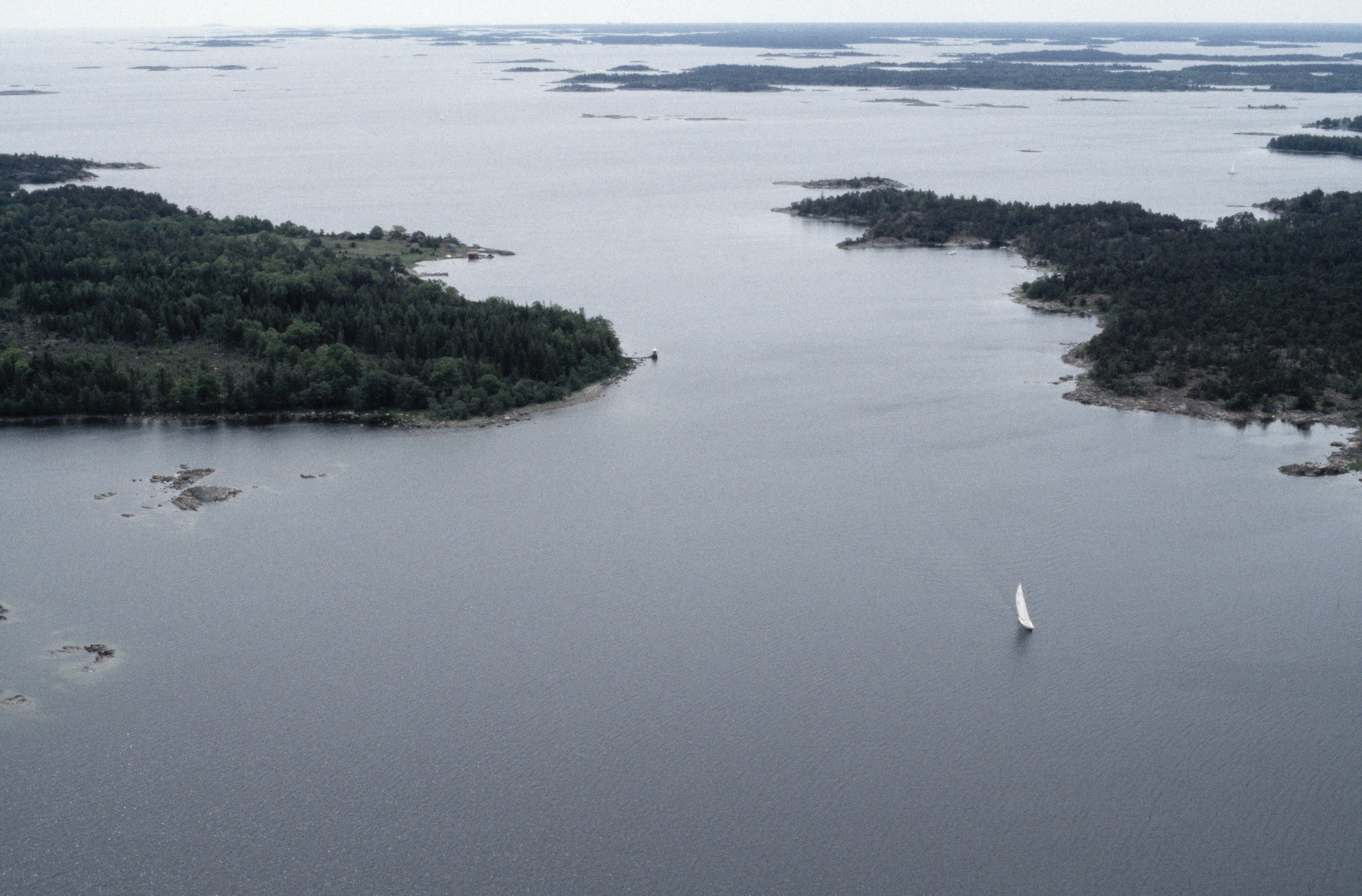 Beskrivning: Idöfjärden i Tjusts skärgård. Ön Idö till vänster med minnesmärke RAÄnr Västrum 195:1. Till höger ön Krokö. Bilden är tagen mot (väderstreck): S