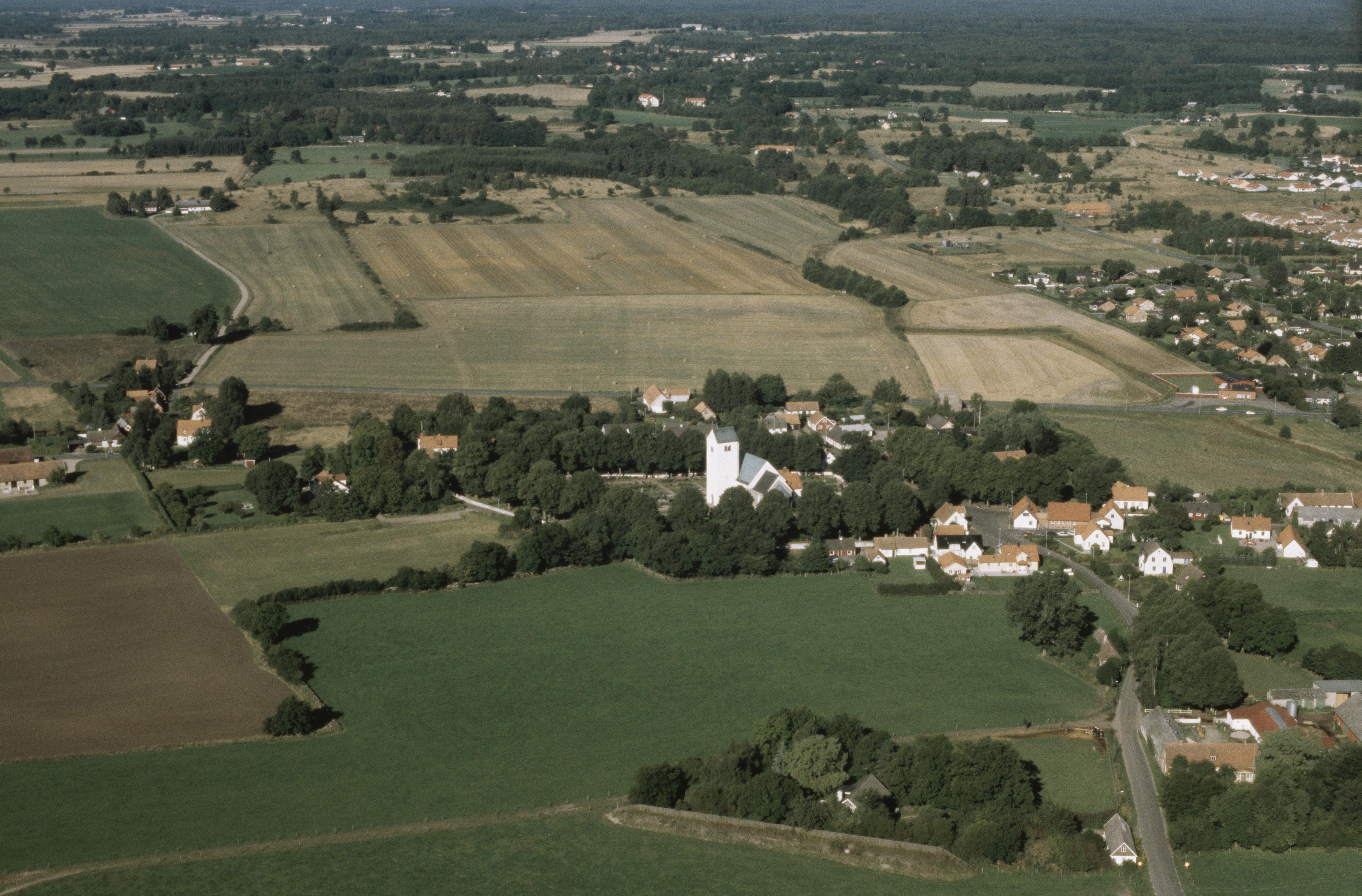 Beskrivning: Vä tätort. Vä kyrka och kyrkoruin RAÄnr Vä 38:1 m.fl. Bilden är tagen mot (väderstreck): V