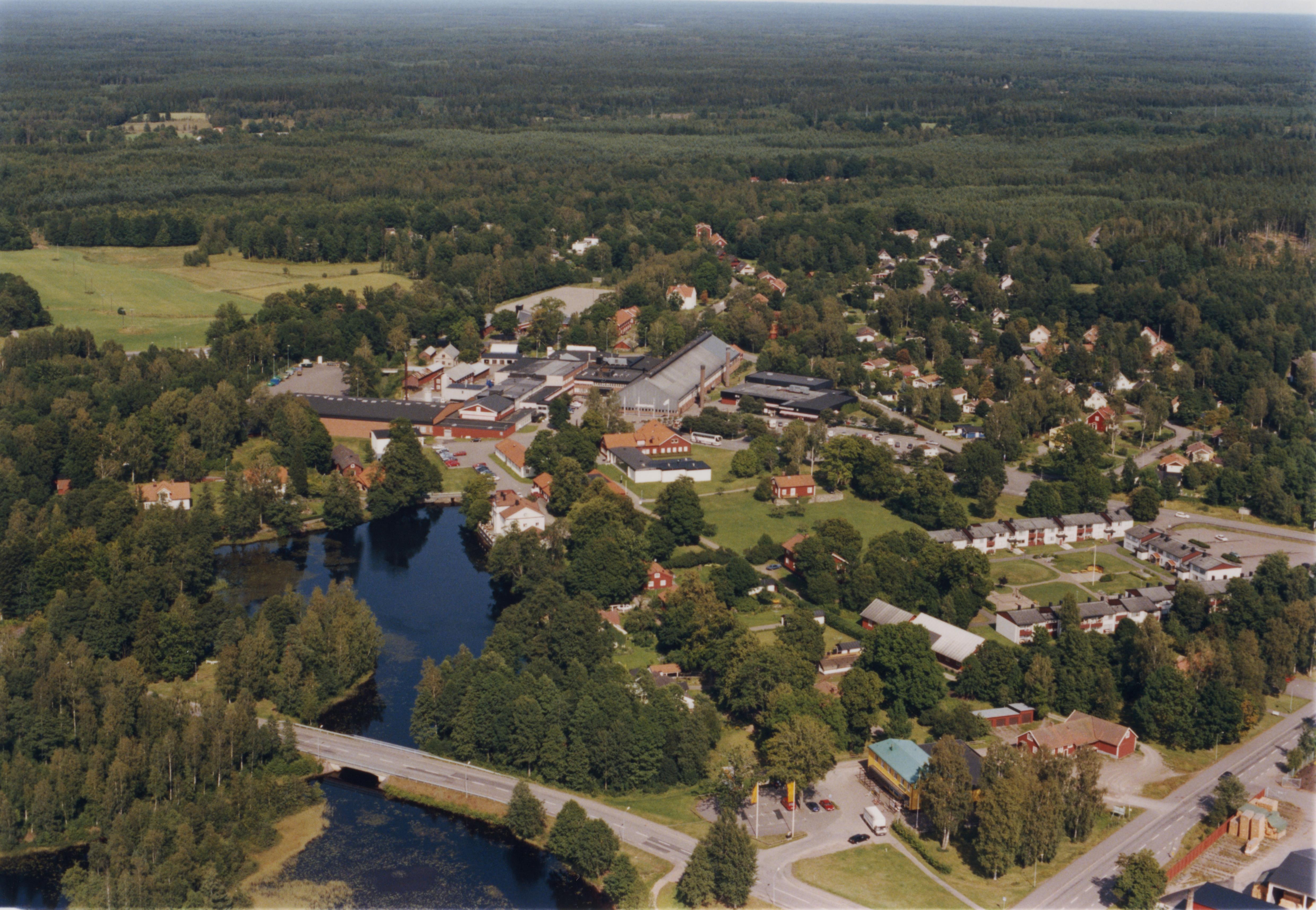 Beskrivning: Orrefors bruk / Orrefors glasbruk RAÄnr Hälleberga 74:1 vid Vapenbäcksån. Bilden är tagen mot (väderstreck): NNO