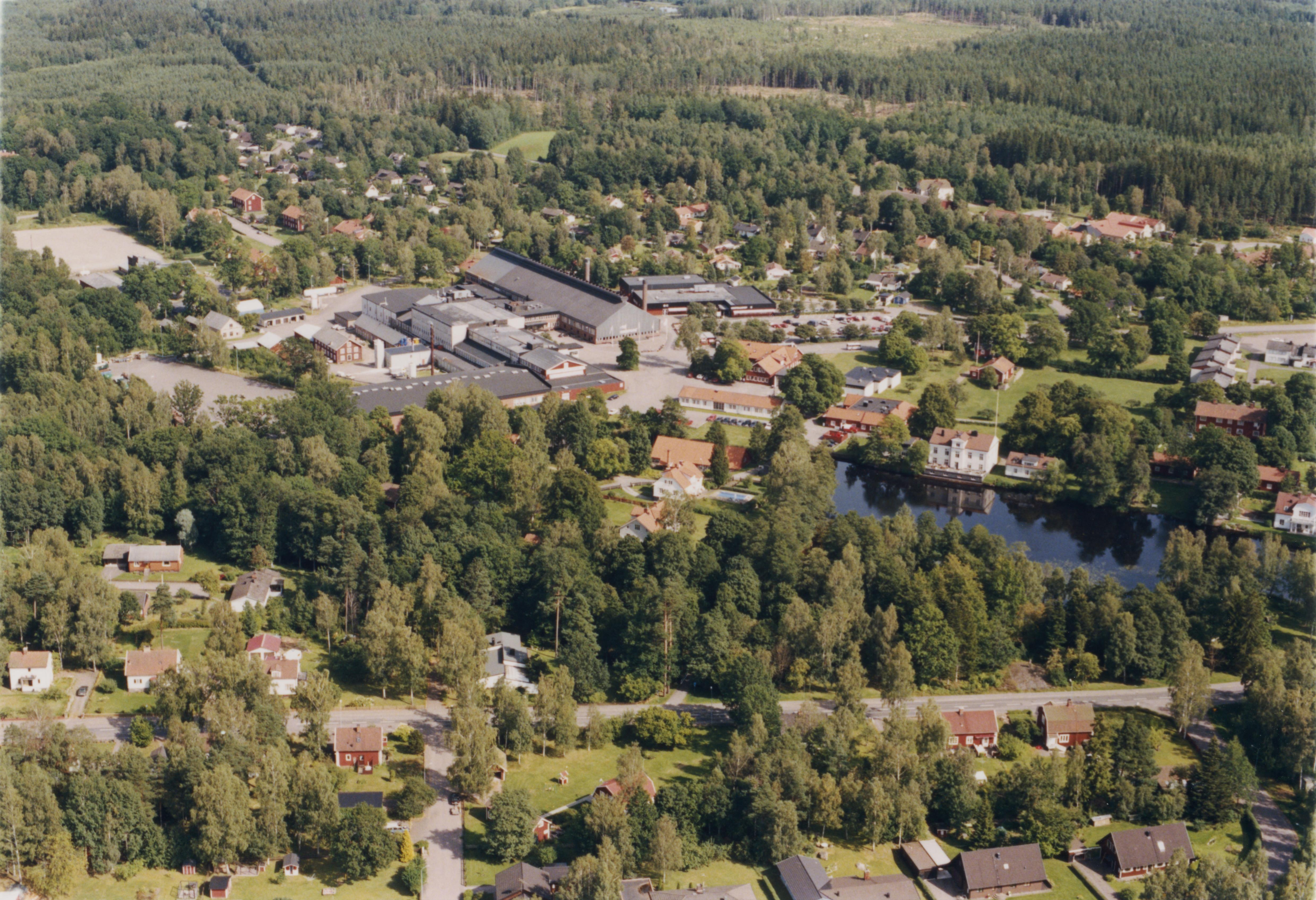 Beskrivning: Orrefors bruk / Orrefors glasbruk RAÄnr Hälleberga 74:1 vid Vapenbäcksån. Bilden är tagen mot (väderstreck): Ö