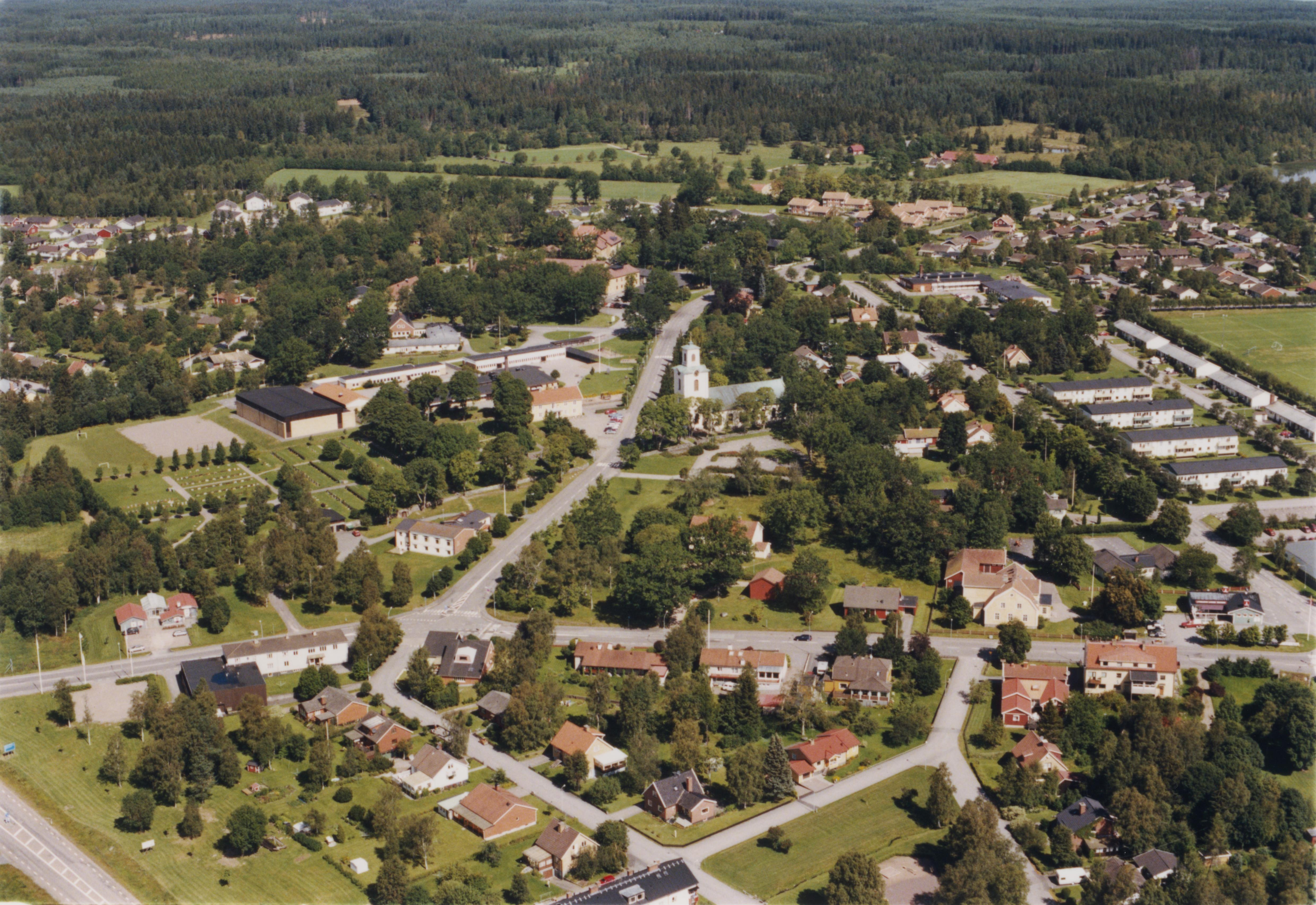 Beskrivning: Lenhovda tätort. Lenhovda kyrka vid bildens mitt. Bilden är tagen mot (väderstreck): N