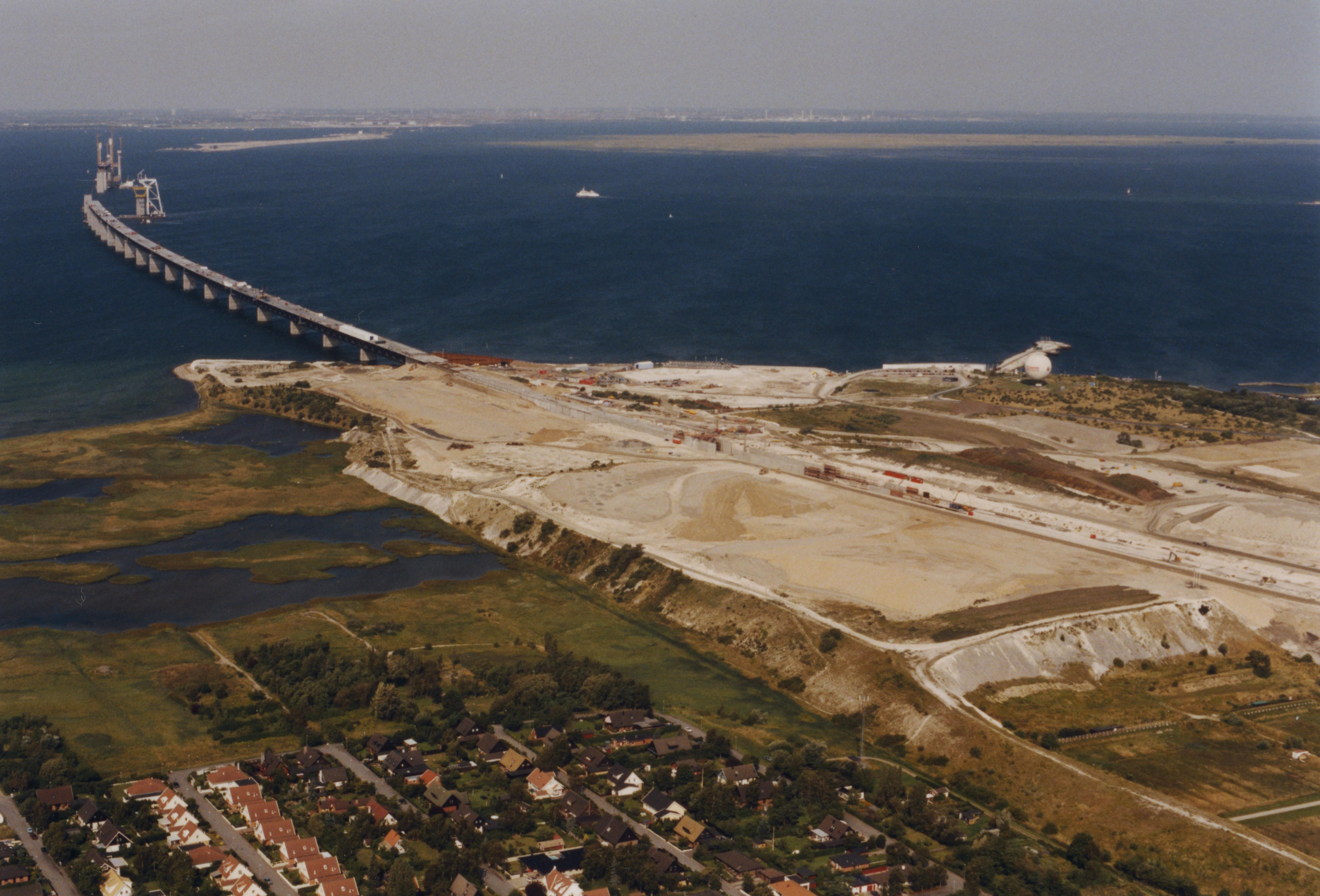 Beskrivning: Tätorten Bunkeflostrand vid sockengränsen Bunkeflo och Malmö. I bildens övre del Öresundsbron och Limhamns kalkbrott vid Sibbarp, Malmö. Bilden är tagen mot (väderstreck): NV