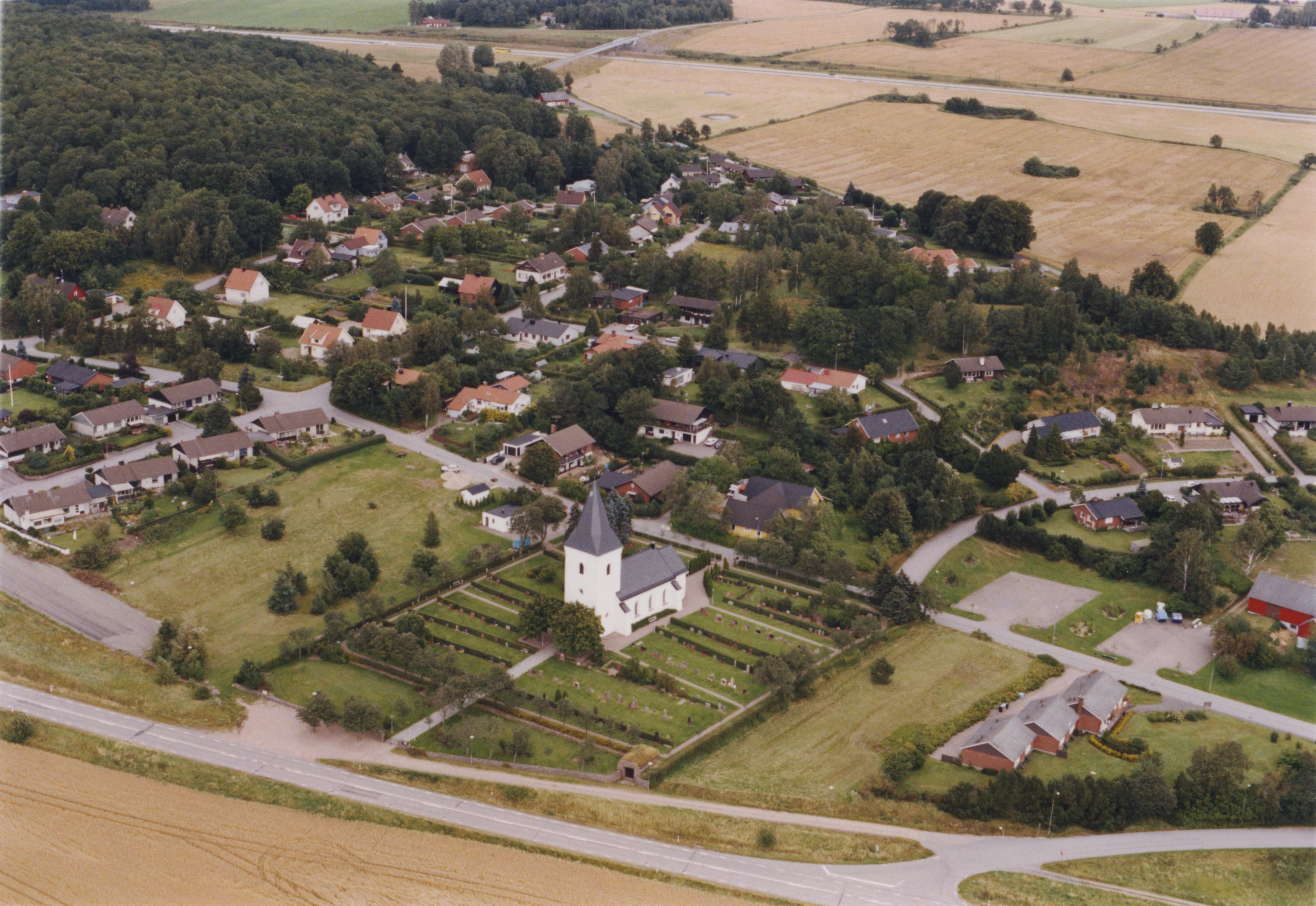 Beskrivning: Tätorten Holm. Holms kyrka. Bilden är tagen mot (väderstreck): NO