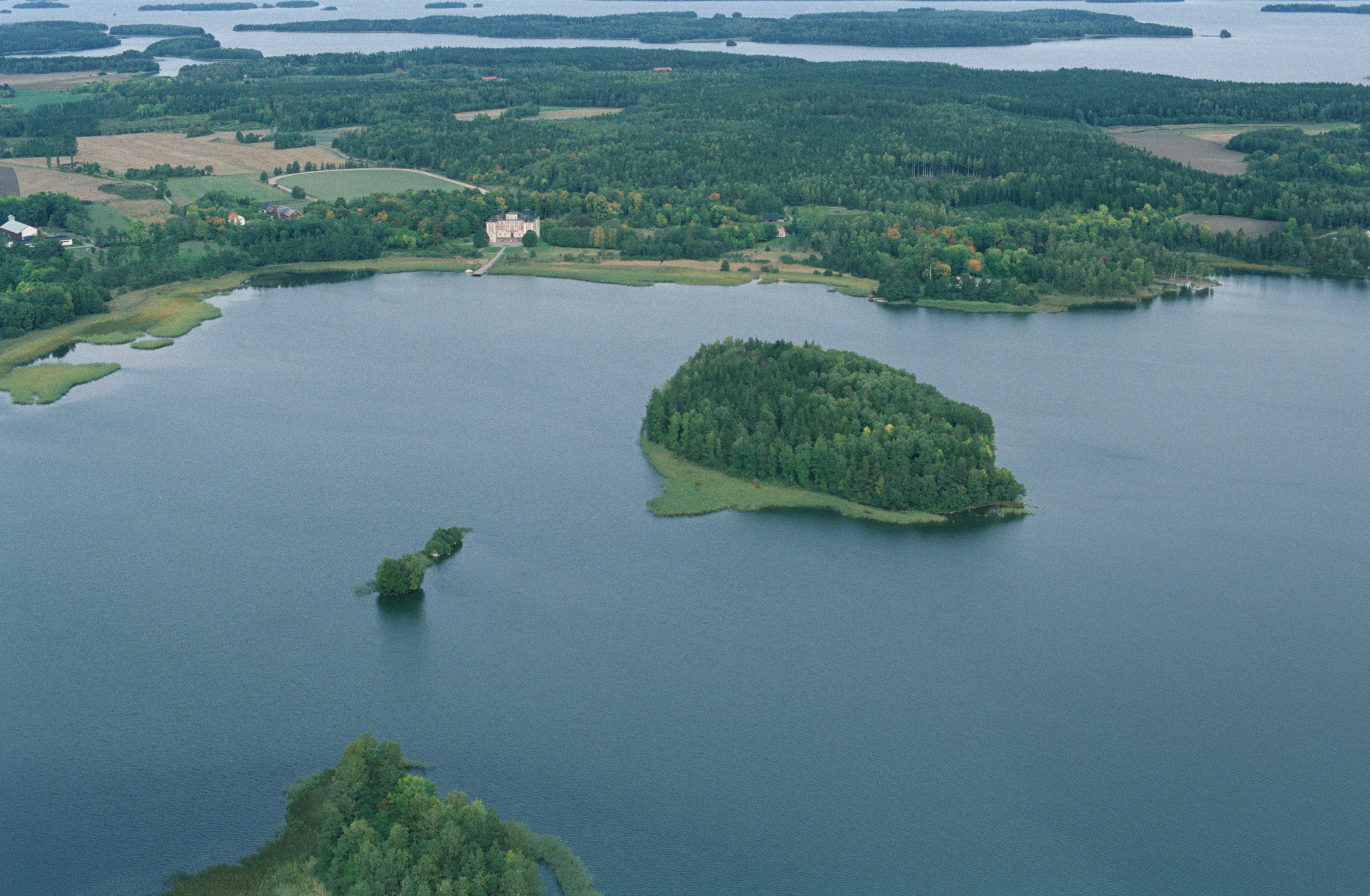 Beskrivning: Mälsåkers slott RAÄnr Ytterselö 122:1 på Selaön vid Prästfjärden i Mälaren. Koholmen nere till vänster, Gåsholmen vid bildens mitt. Bilden är tagen mot (väderstreck): N