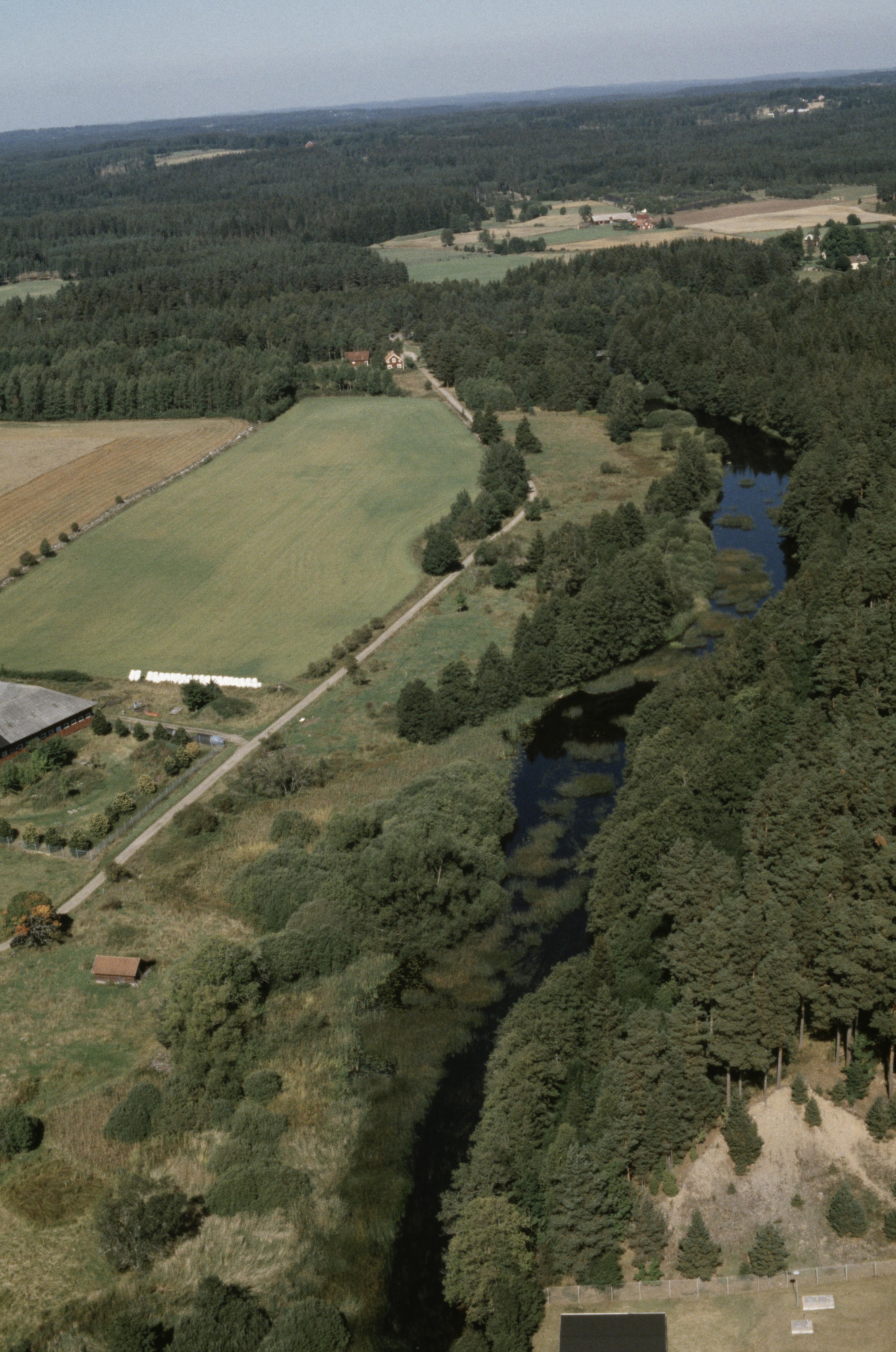 Beskrivning: Emån vid Upplanda och Byestads by. Vad RAÄnr Vetlanda 160:1 vid bildens mitt. Bilden är tagen mot (väderstreck): N