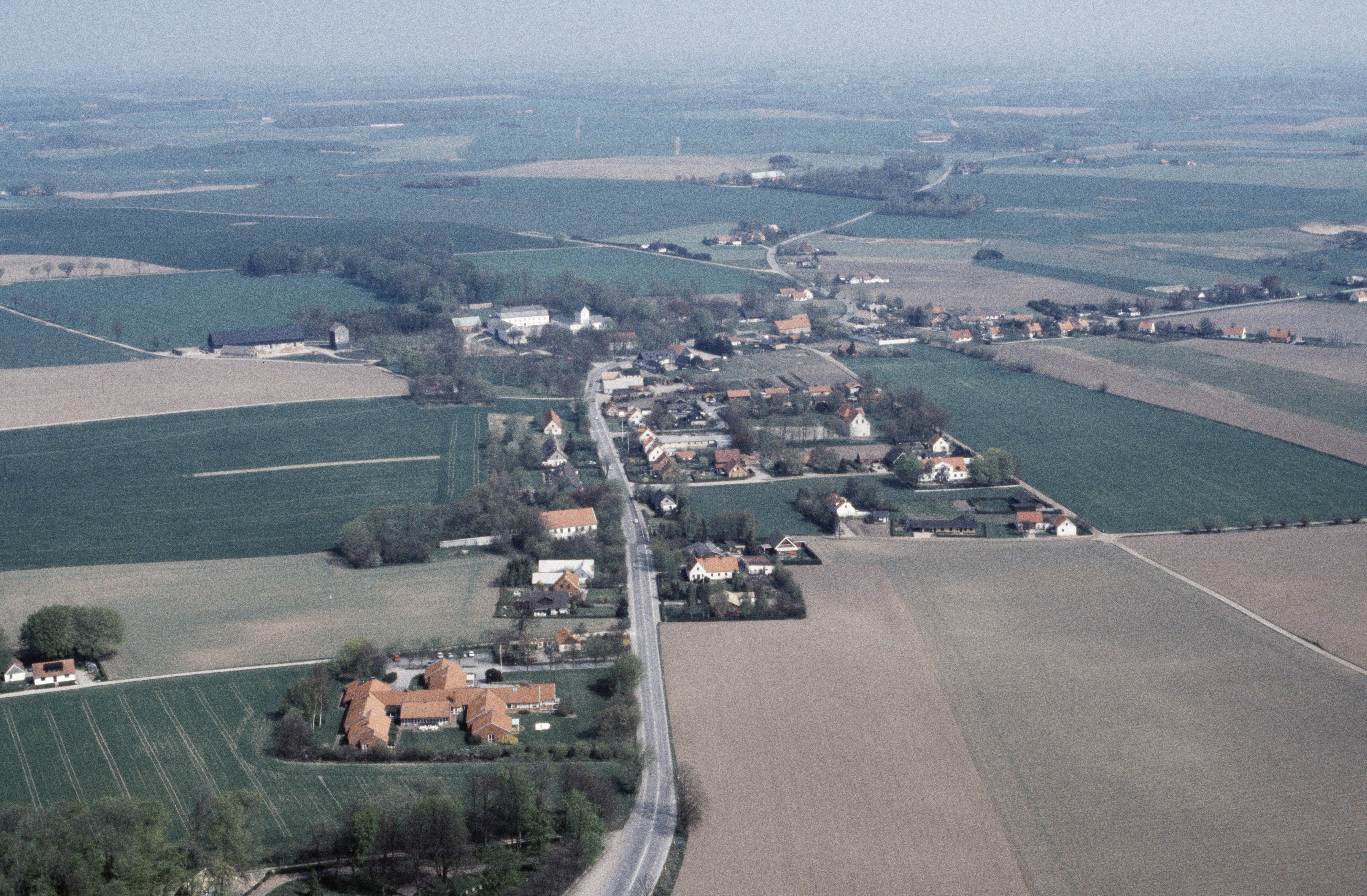 Beskrivning: Stora Herrestads herrgård uppe till vänster om bildens mitt. Bilden är tagen mot (väderstreck): NNO