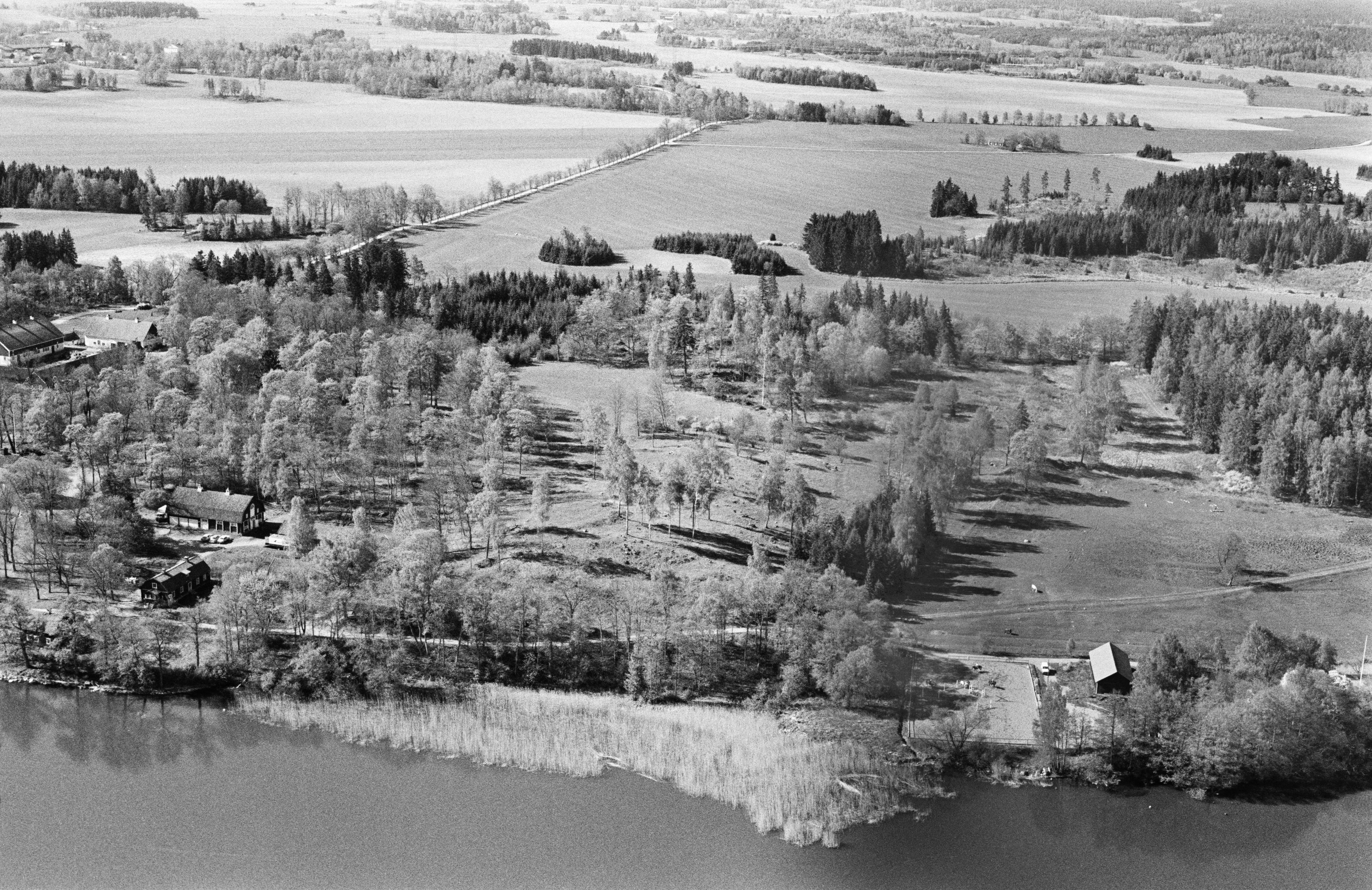 Beskrivning: Signhildsbergs kungsgård vid Håtunaviken i Mälaren. I området husgrund Fornsigtuna RAÄnr Håtuna 101:1, gravfält Håtuna 99:1 m.fl. Under bildens mitt tegelindustri Håtuna 122:1. Bilden är tagen mot (väderstreck): SV