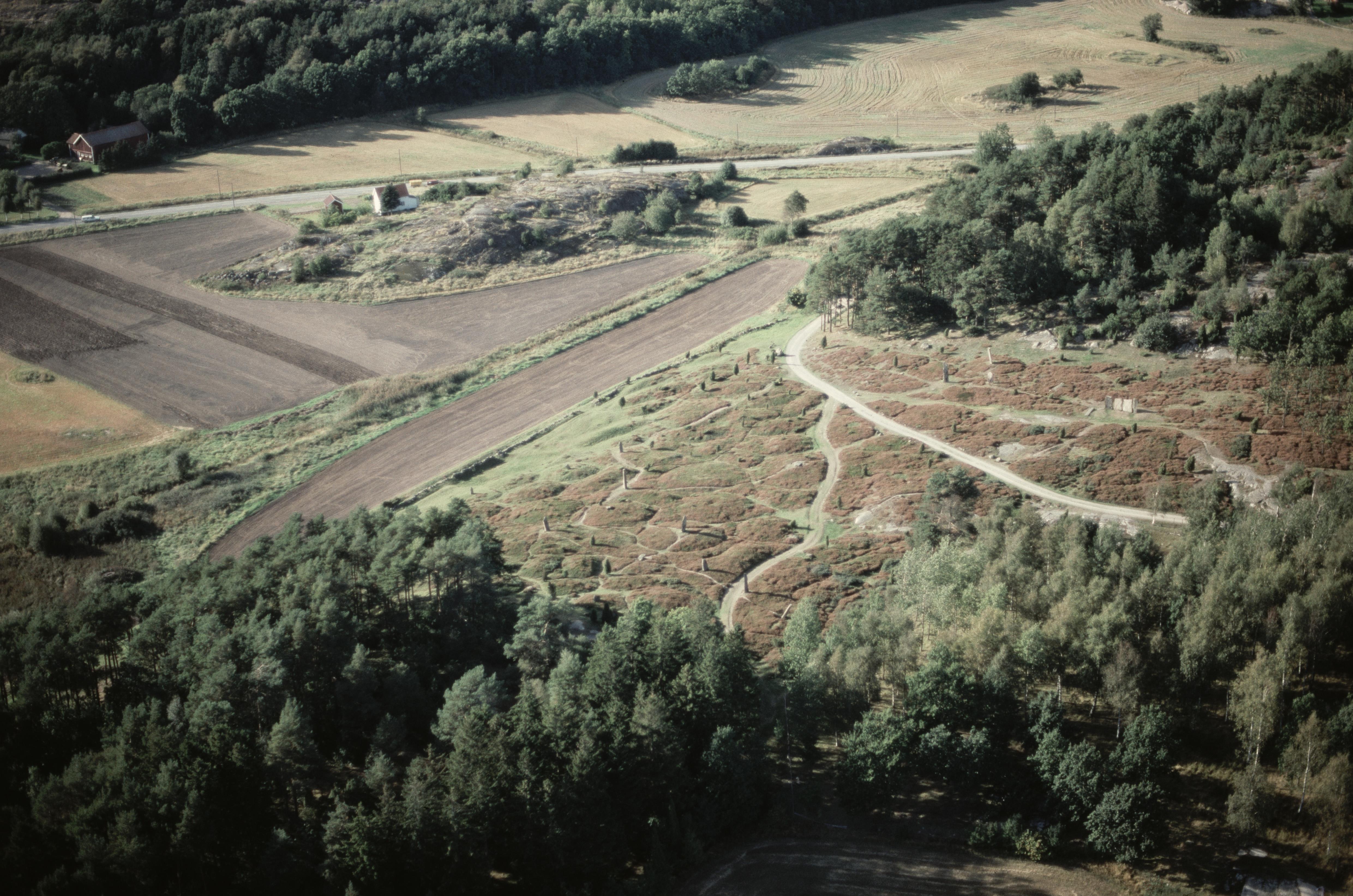 Beskrivning: Greby gravfält RAÄnr Tanum 734:1. Stort och välbevarat gravfält med nära 200 kända anläggningar. Bilden är tagen mot (väderstreck): NV
