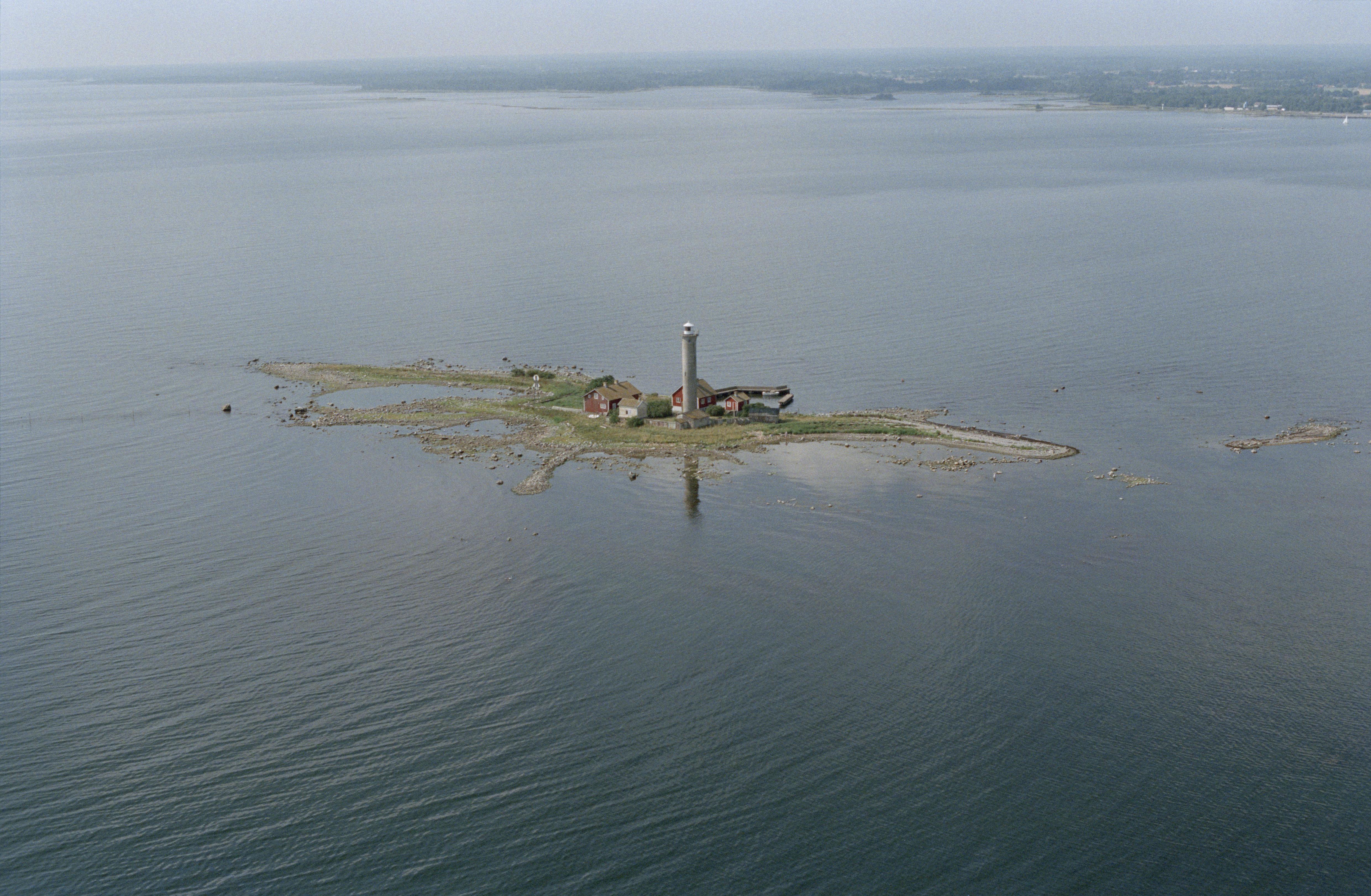 Beskrivning: Garpens fyr på ön Garpen vid Bergkvara. Bilden är tagen mot (väderstreck): SV