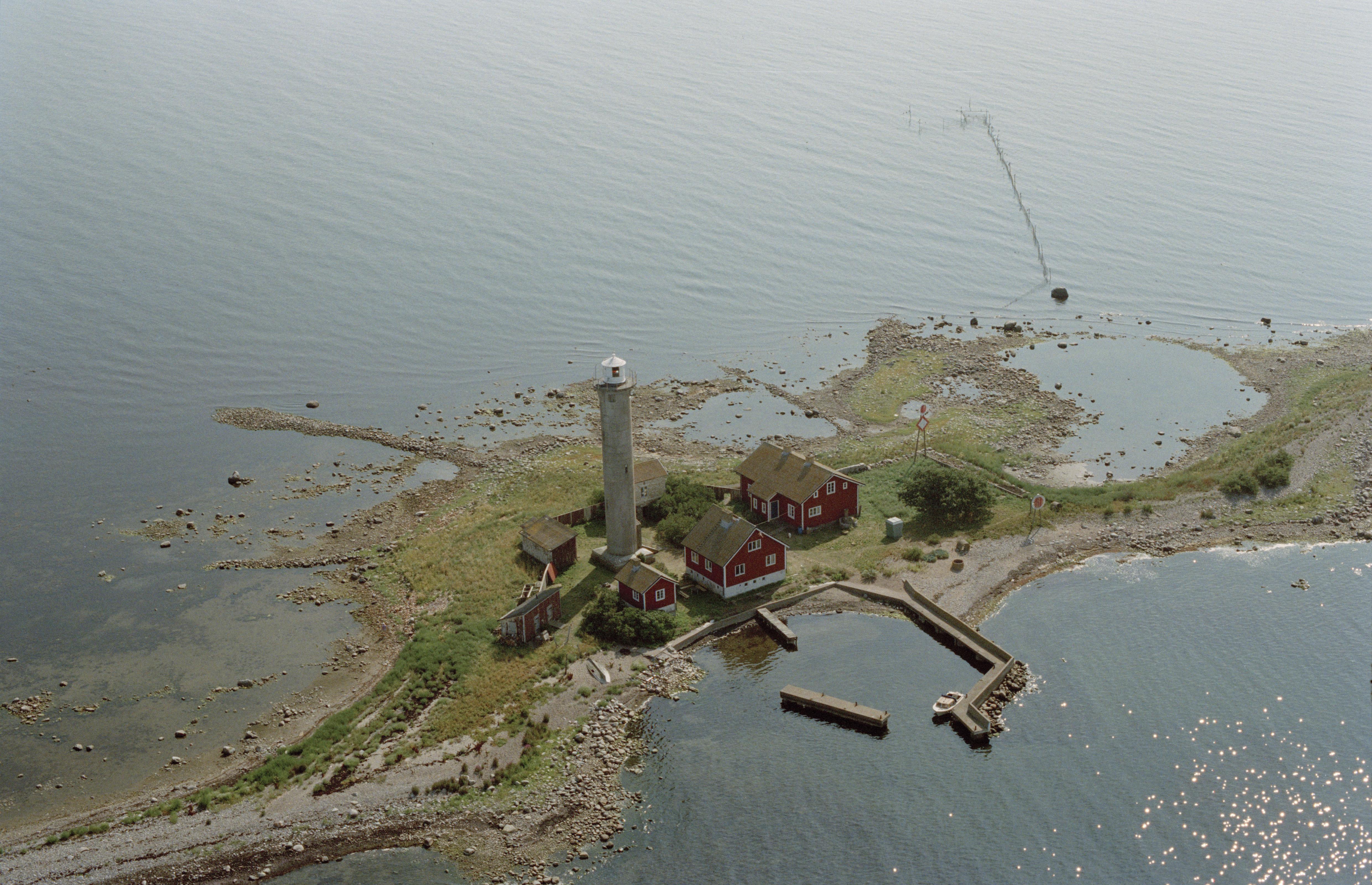 Beskrivning: Garpens fyr på ön Garpen vid Bergkvara. Bilden är tagen mot (väderstreck): SO