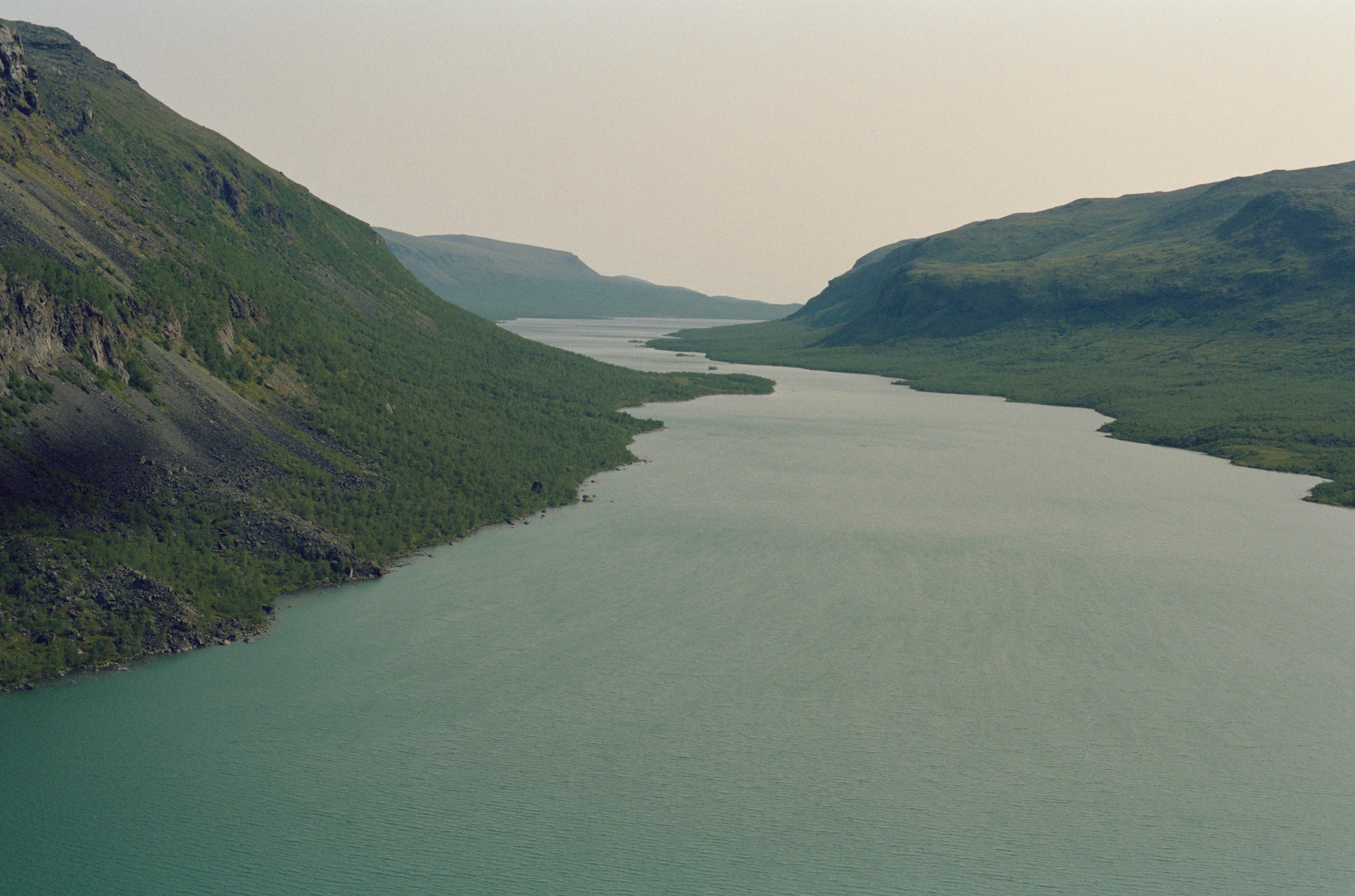 Beskrivning: Sjön Rautasjaure (Rávttasjávri) mot sydöst. I bildens övre del sundet Coalbmi och vid stranden uppe till höger viste RAÄnr Jukkasjärvi 177:1 vid bergen Várregaska och Lulip Vealevárri. Bilden är tagen mot (väderstreck): SO