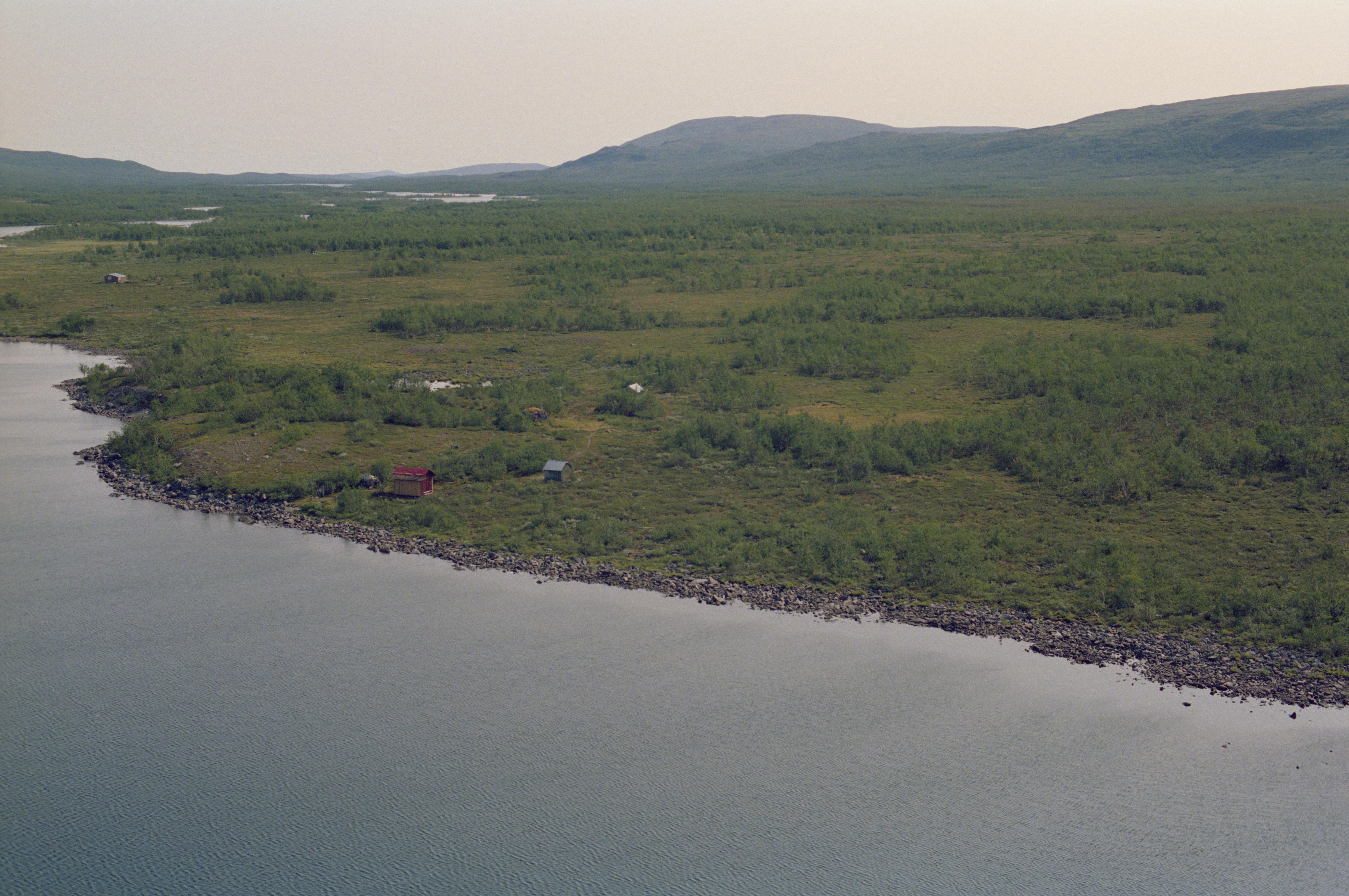 Beskrivning: Ett viste på sydöstra stranden av sjön Rautasjaure (Rávttasjávri), väster i området vid Rautasluspen (Rávttasluspi). Uppe till vänster en renvaktarstuga. I bildens övre del vistelämning RAÄnr Jukkasjärvi 175:1. Bilden är tagen mot (väderstreck): OSO
