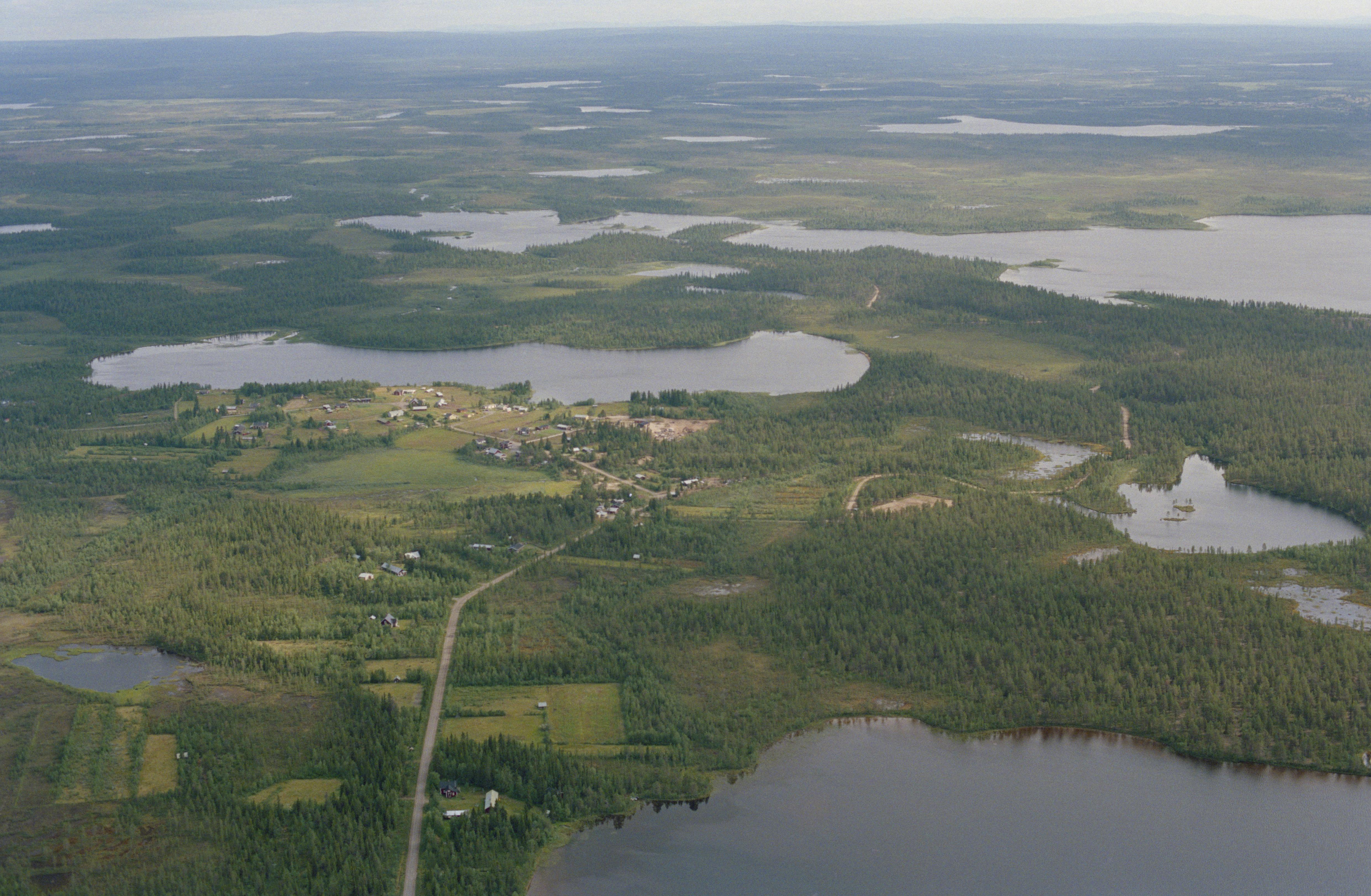 Beskrivning: Vivungi (Vivunki / Viivvuk) by. Över bildens mitt sjön Vivunkijärvi (Viivvukjávri). Vid sjön nordöstra strand (över bildens mitt) boplats RAÄnr Jukkasjärvi 714:1, 715:1, m.m. I bildens övre del sjön Vaikkojärvi (Vaihkojärvi) och ån Vaikkijoki (Vaihkojoki) med fångstgropar. Bilden är tagen mot (väderstreck): NO