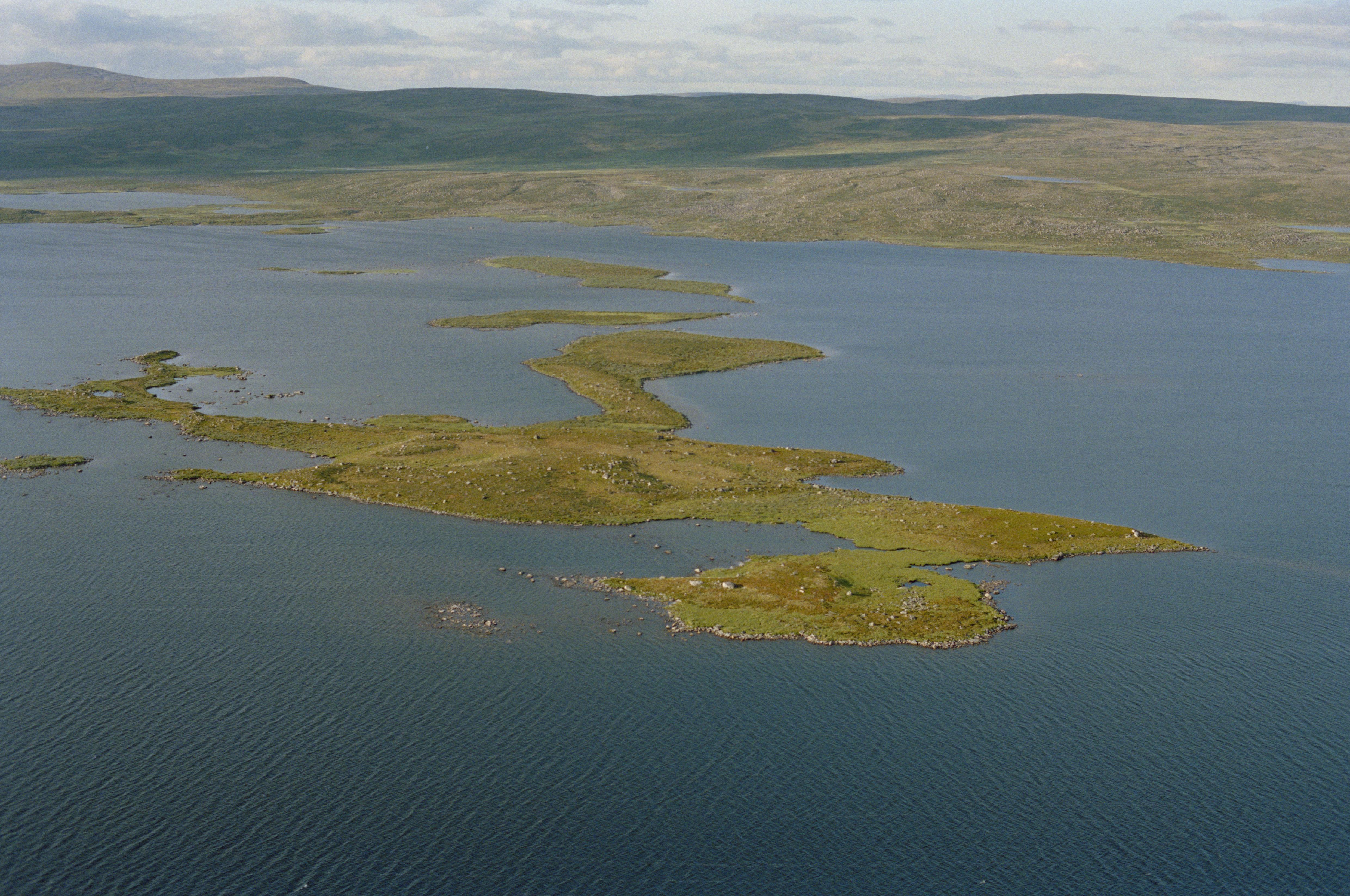 Beskrivning: Sjön Råstojaure (Rostojávri / Rostojärvi). Udden Seiddenjarga (Sieiddinjárga) vid norra stranden. Offerplats RAÄnr Karesuando 7:1. Bilden är tagen mot (väderstreck): N