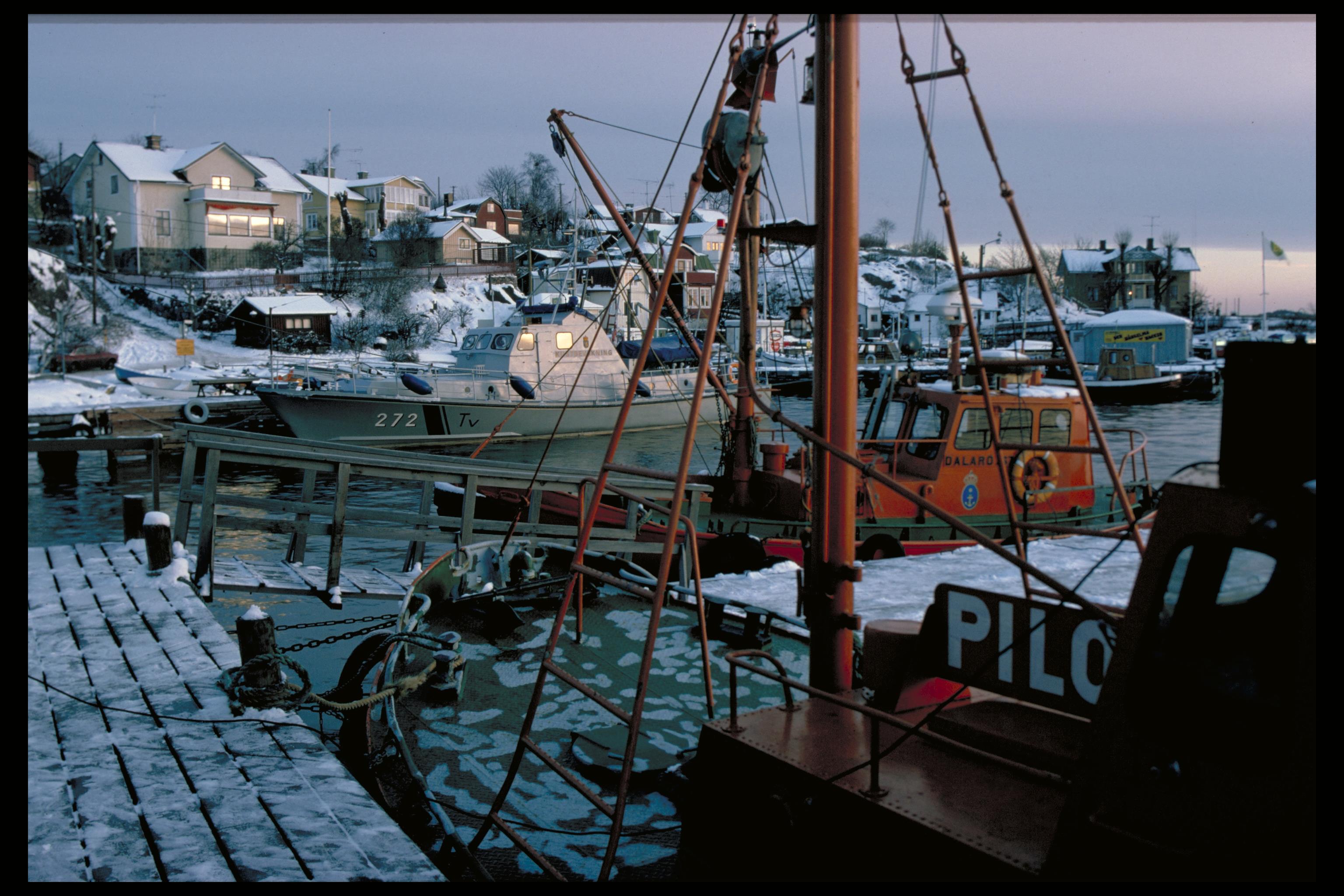 Båtar i hamnen. Bilden troligen från slutet av 1970-talet.