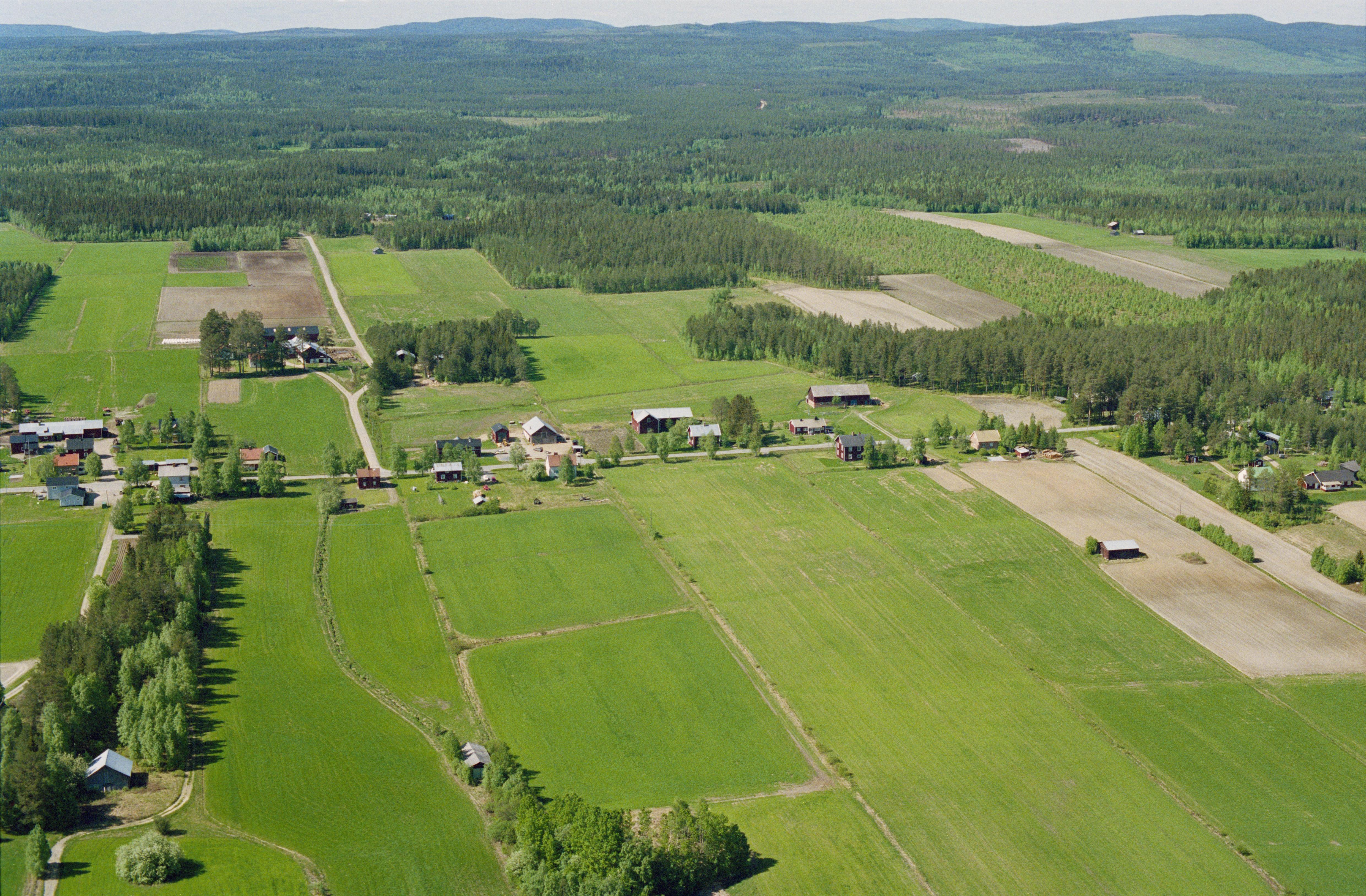Beskrivning: Örträsks kyrkby och jordbruksby runt Örträsksjön. Området Västra Örträsk. I skogkanten till vänster i bildens övre del en härdlämning RAÄnr Örträsk 36:1. Bilden är tagen mot (väderstreck): SV