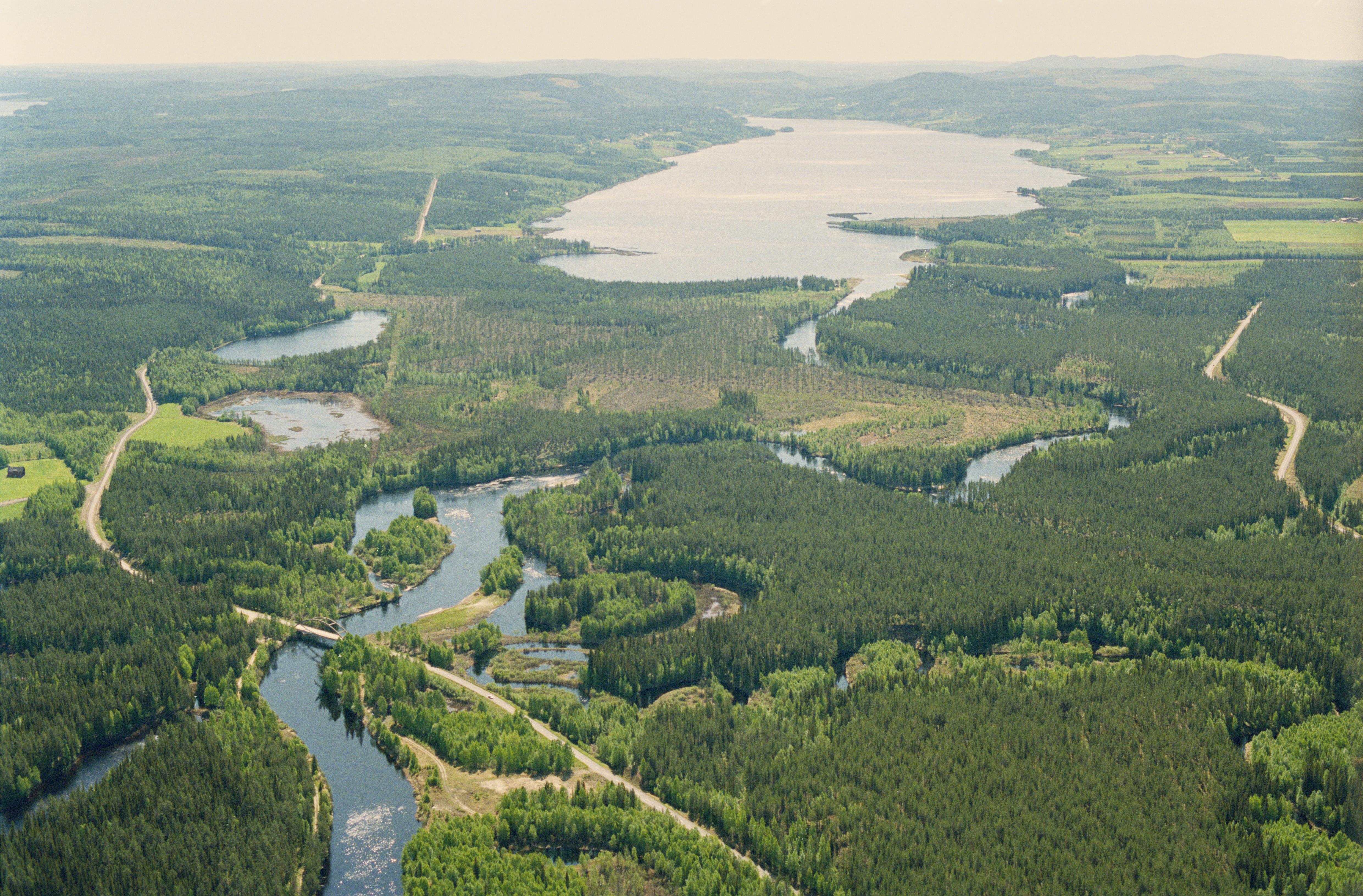 Beskrivning: I bildens nedre del Örån nordväst om Örträsksjön. I området flera fångstgropar RAÄnr Örträsk 46:1-5, 76:1 m.fl. Kvarnfors by till vänster under bildens mitt. I bildens övre del Örträsks kyrkby runt Örträsksjön. Bilden är tagen mot (väderstreck): SO