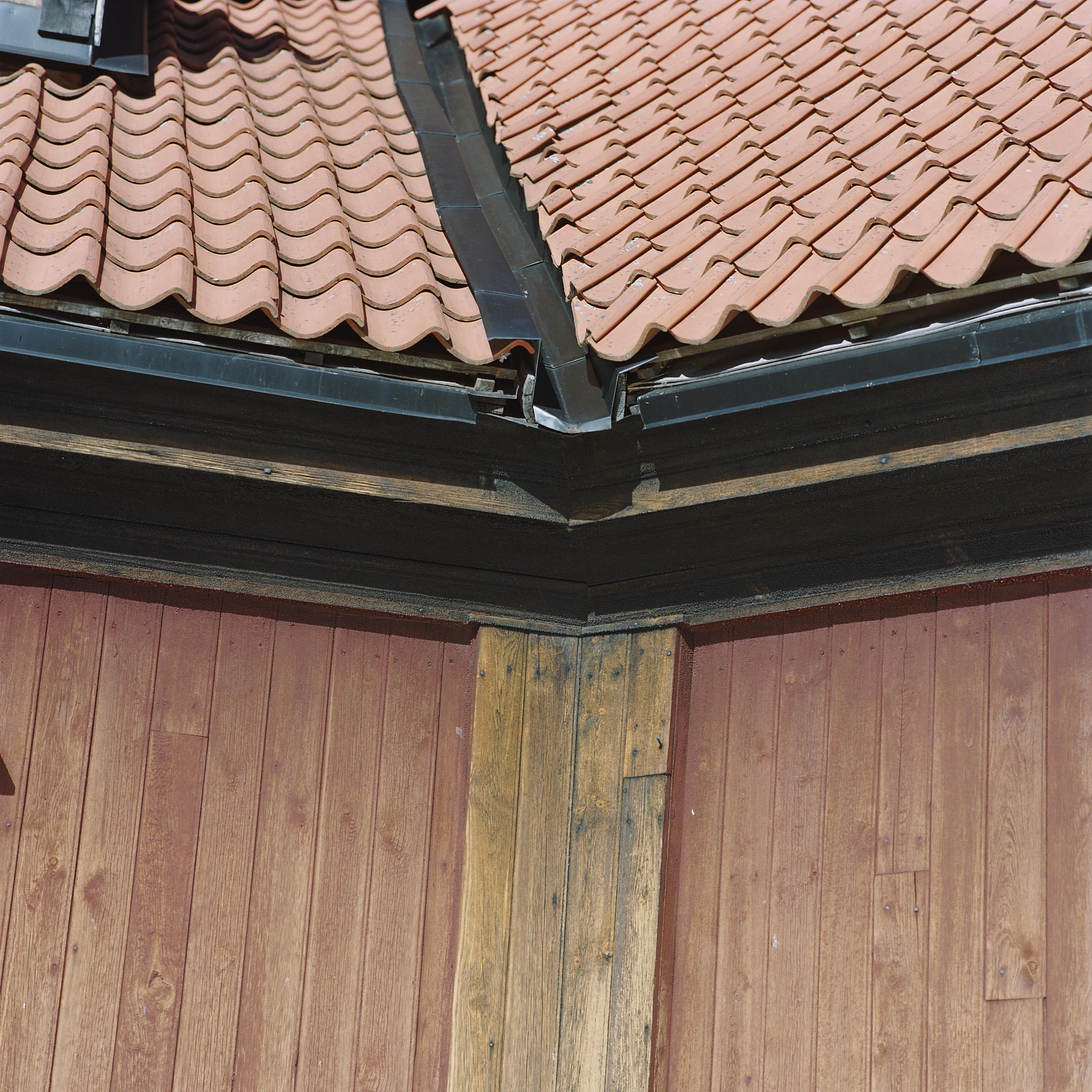 Beskrivning: Ränndalen mot östra korsarmen i sydost. Äldre plåtbeläggning synlig under den nya.