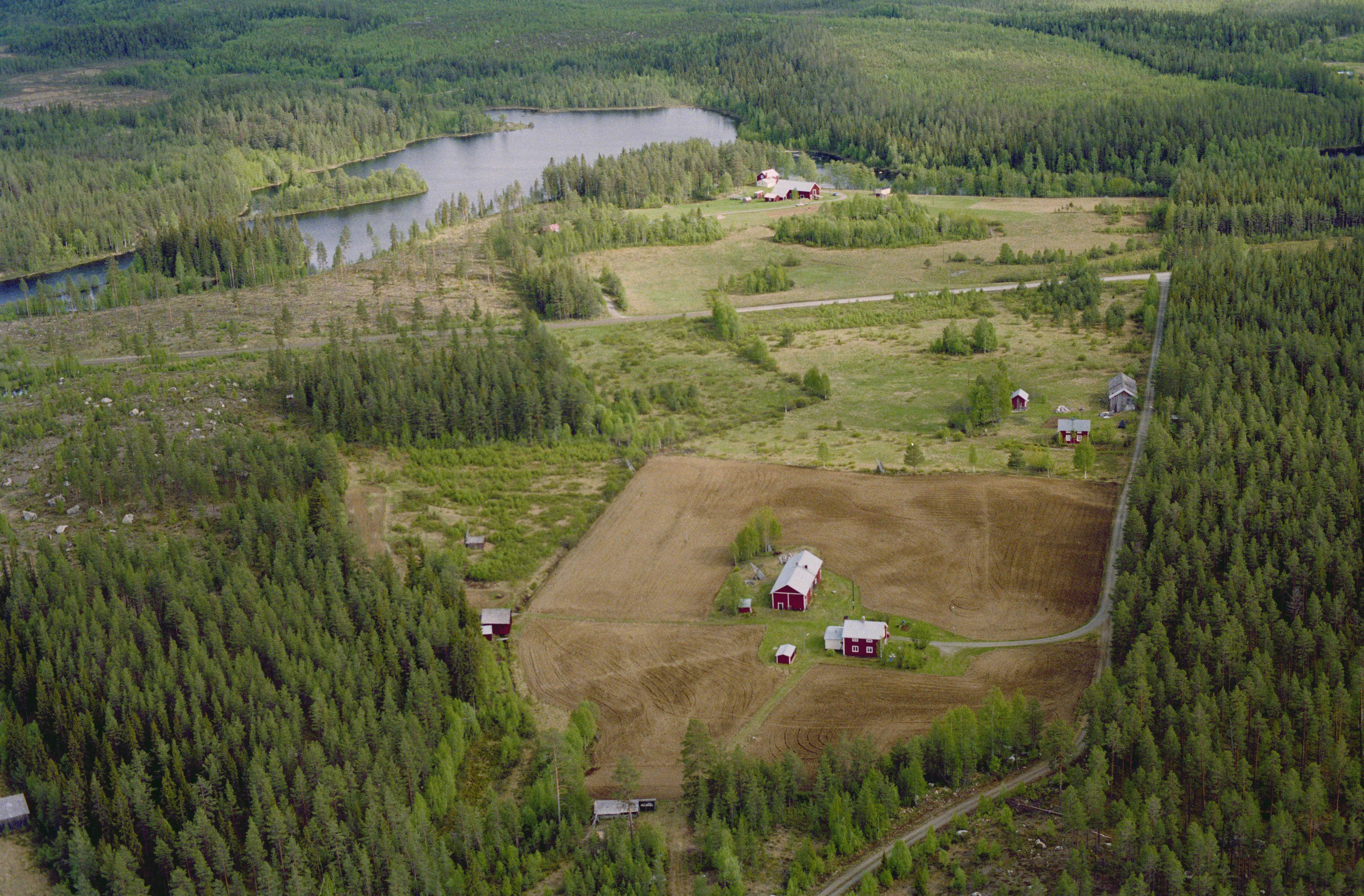 Beskrivning: I bildens nedre del området Nyland, nordöst om orten Gunnarn och väster om Juktån. I bildens mitt och nedre del torp i Juktåkolonin som är en grupp kronolägenheter / torp i områdena vid Juktån och orten Gunnarn. Längs Juktån över bildens mitt fångstgropar RAÄnr Stensele 1166 m.fl. Bilden är tagen mot (väderstreck): SO