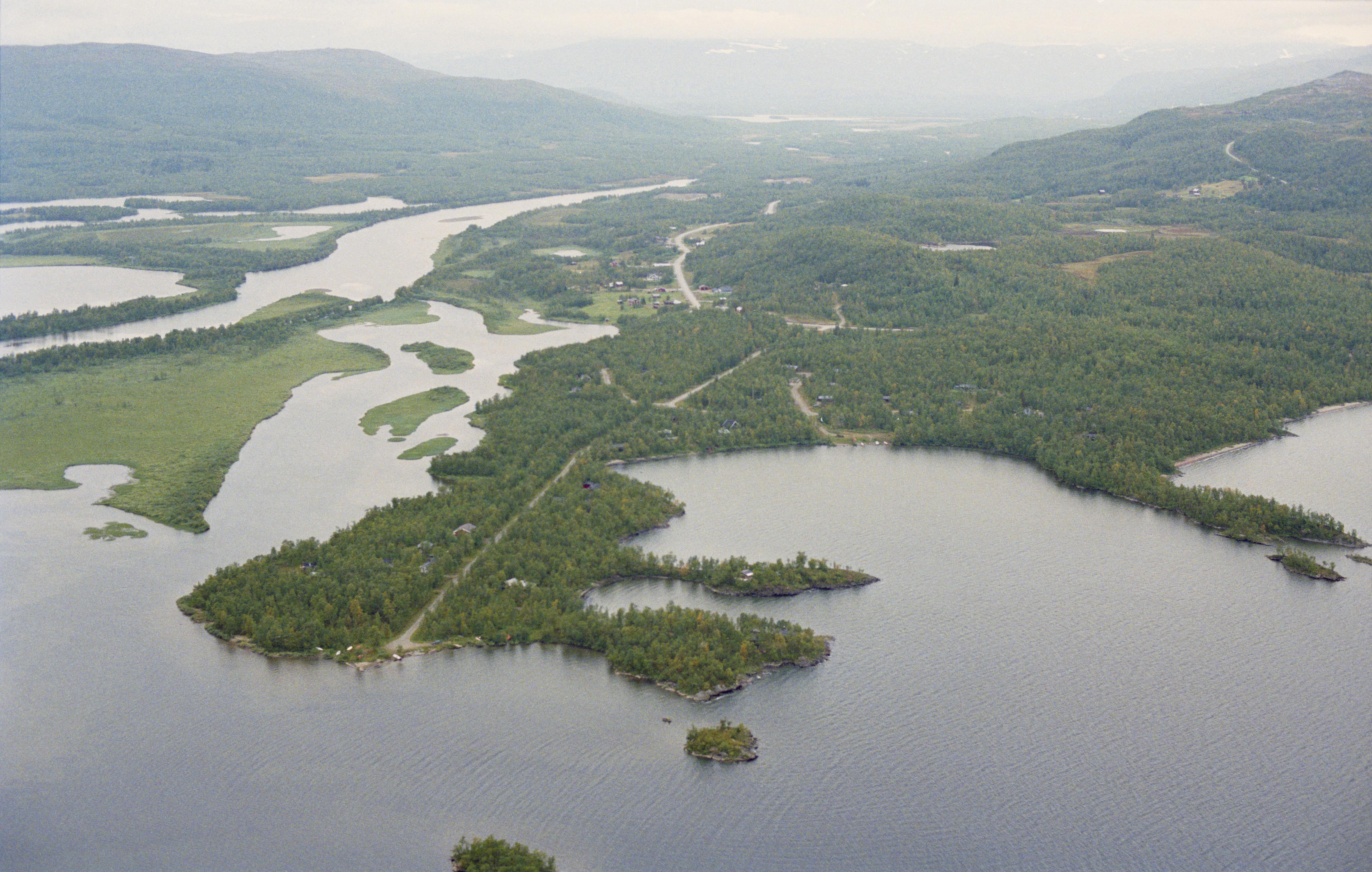 Beskrivning: Umeälvens inflöde i sjön Stor-Laisan (Stoere Laajsere), söder om byn Laisholm. I bildens nedre del Gammställnäset med boplats RAÄnr Tärna 89:1, kåta Tärna 176:1, husgrund Tärna 177:1, m.m. Bilden är tagen mot (väderstreck): NV
