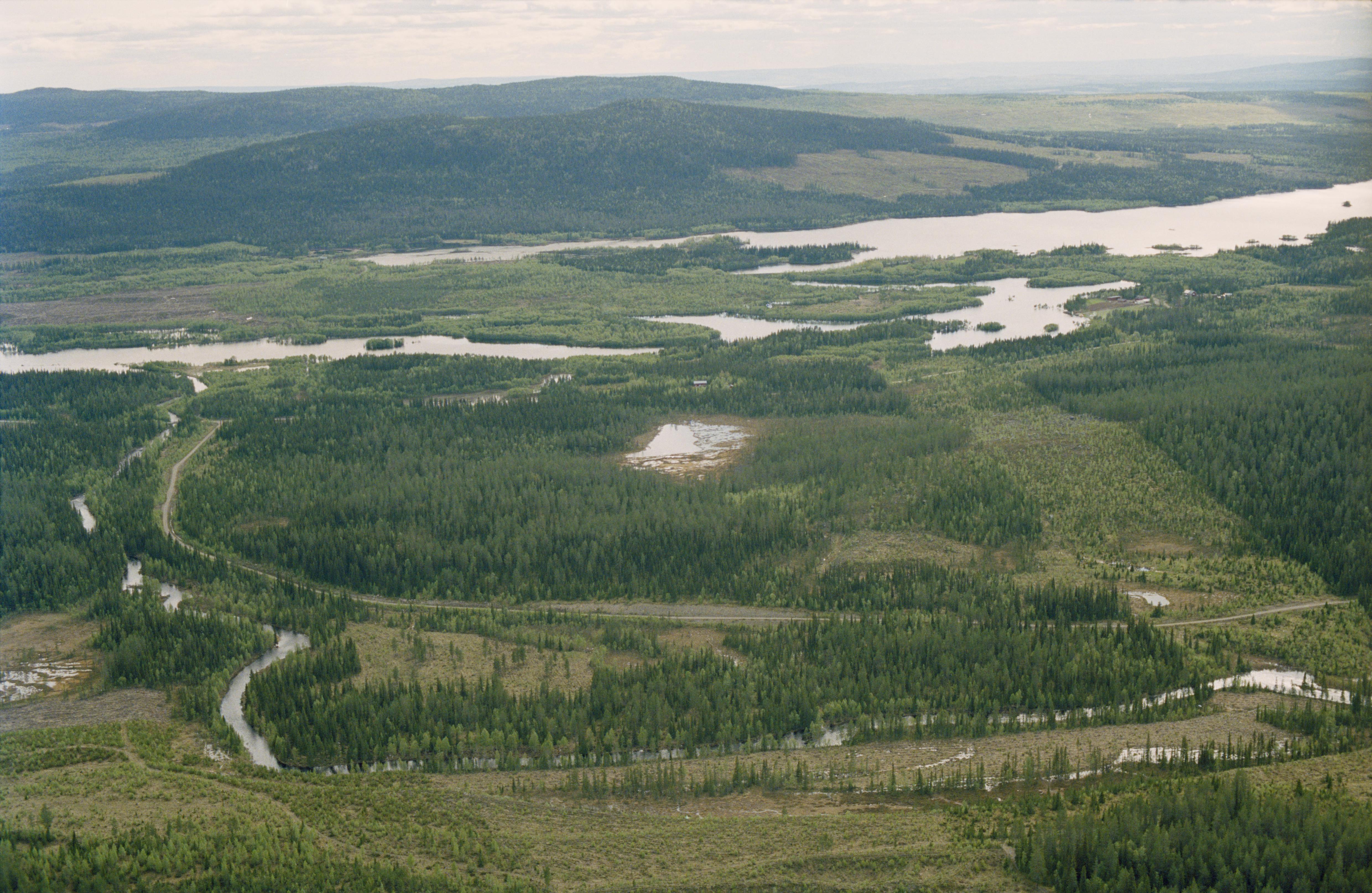 Beskrivning: Fångstmiljö i området mellan Gråtanån och Vojmån i Vojmsjöns sydöstra ände. Område med flera boplatser och fångstgropssystem. Vid bildens mitt fångstgrop RAÄnr Vilhelmina 191:1, boplats Vilhelmina 568:1 m.fl. Bilden är tagen mot (väderstreck): SSV