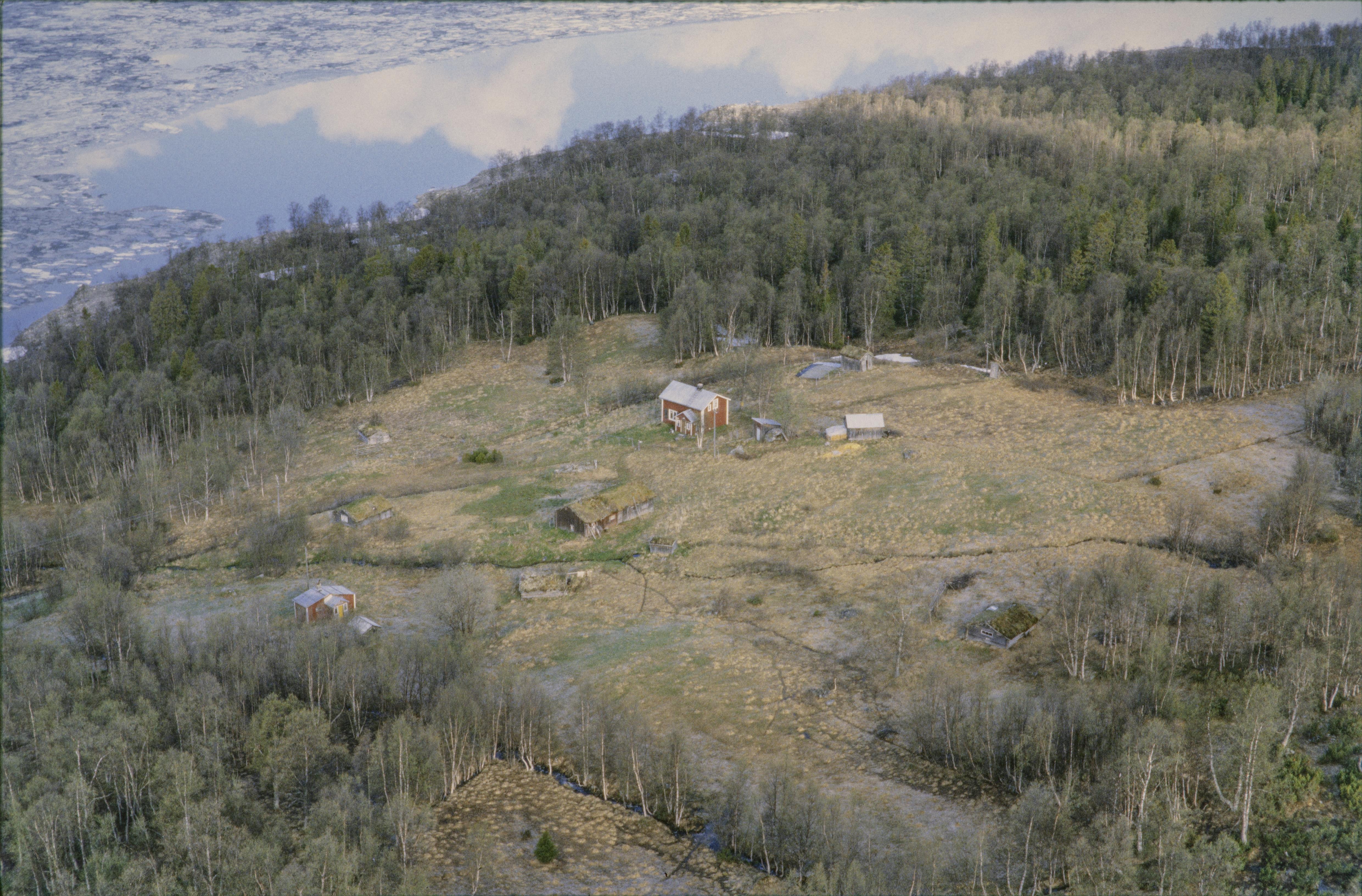 Beskrivning: Fjällgården Brattås vid sjön Ransarn (Raentsere). Bilden är tagen mot (väderstreck): NV