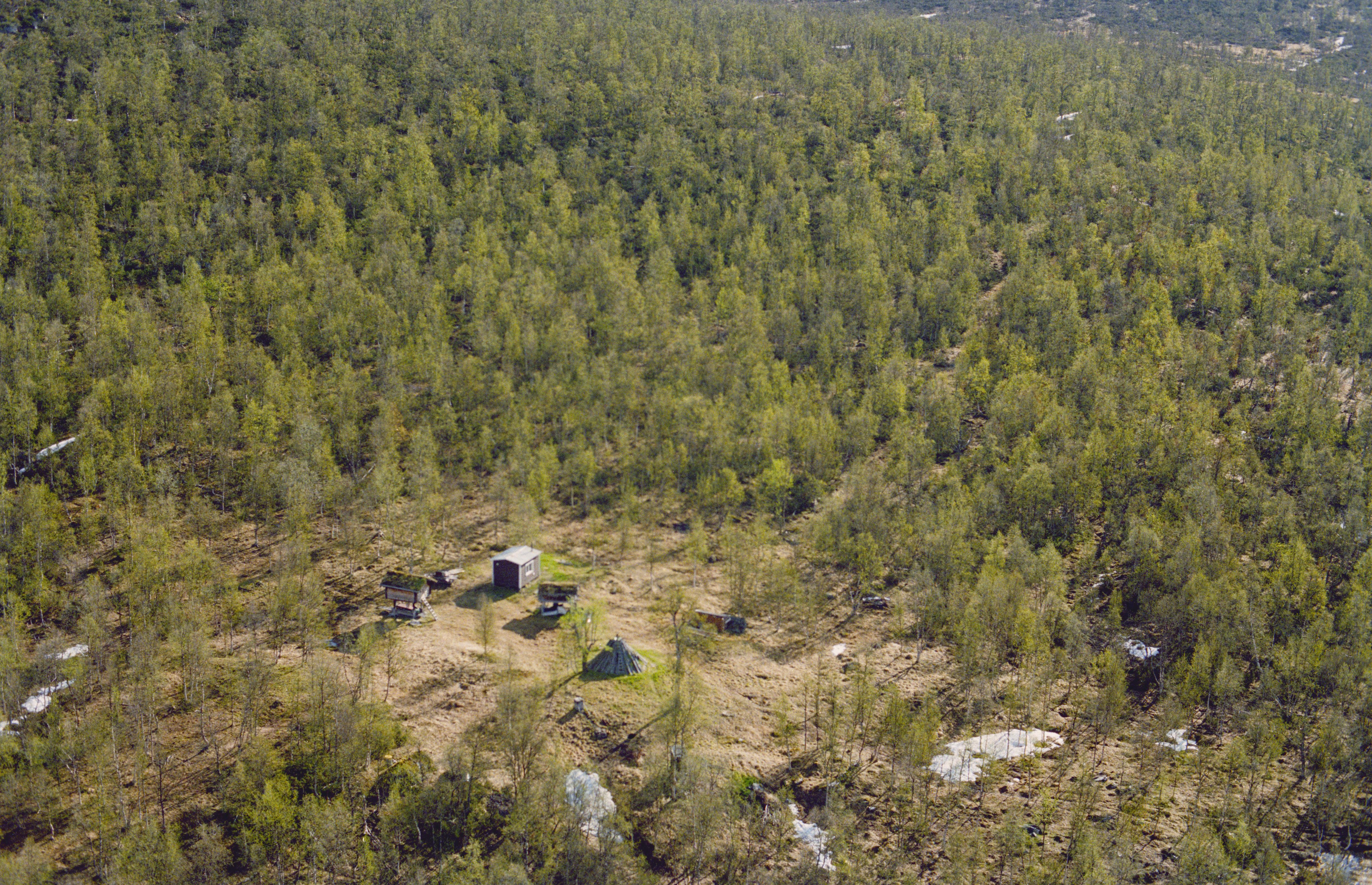 Beskrivning: Anmärkning (övrig): Riksintresse-nr/namn: AC49 - Ransarnområdet. Socken: Vilhelmina. Motivering: Fjällbygd som speglar livsvillkoren och den lokala byggnadstraditionen i södra Lapplands fjälltrakter. (Nybygge). - Uttryck för riksintresset: Nybyggarmiljö från perioden 1890-1920 med fem gårdar med bostadshus, härbren, kåtor, gethus och mjölkbodar. Ransarn är ett av de senast koloniserade områdena i Sverige. [Texten uppdaterat av Riksantikvarieämbetet våren 2013.] Beskrivning: S. Klementssons samviste i skogen mot bergstoppen Söökesaesie, norr om sjön Vökarn (Vuakere). Vistet är sydöst om fornlämning RAÄnr Vilhelmina 2001:1 (ej i bilden). Området ingår i Marsfjällets naturreservat. Bilden är tagen mot (väderstreck): NNO Fotosyfte: Flygbildsdokumentation