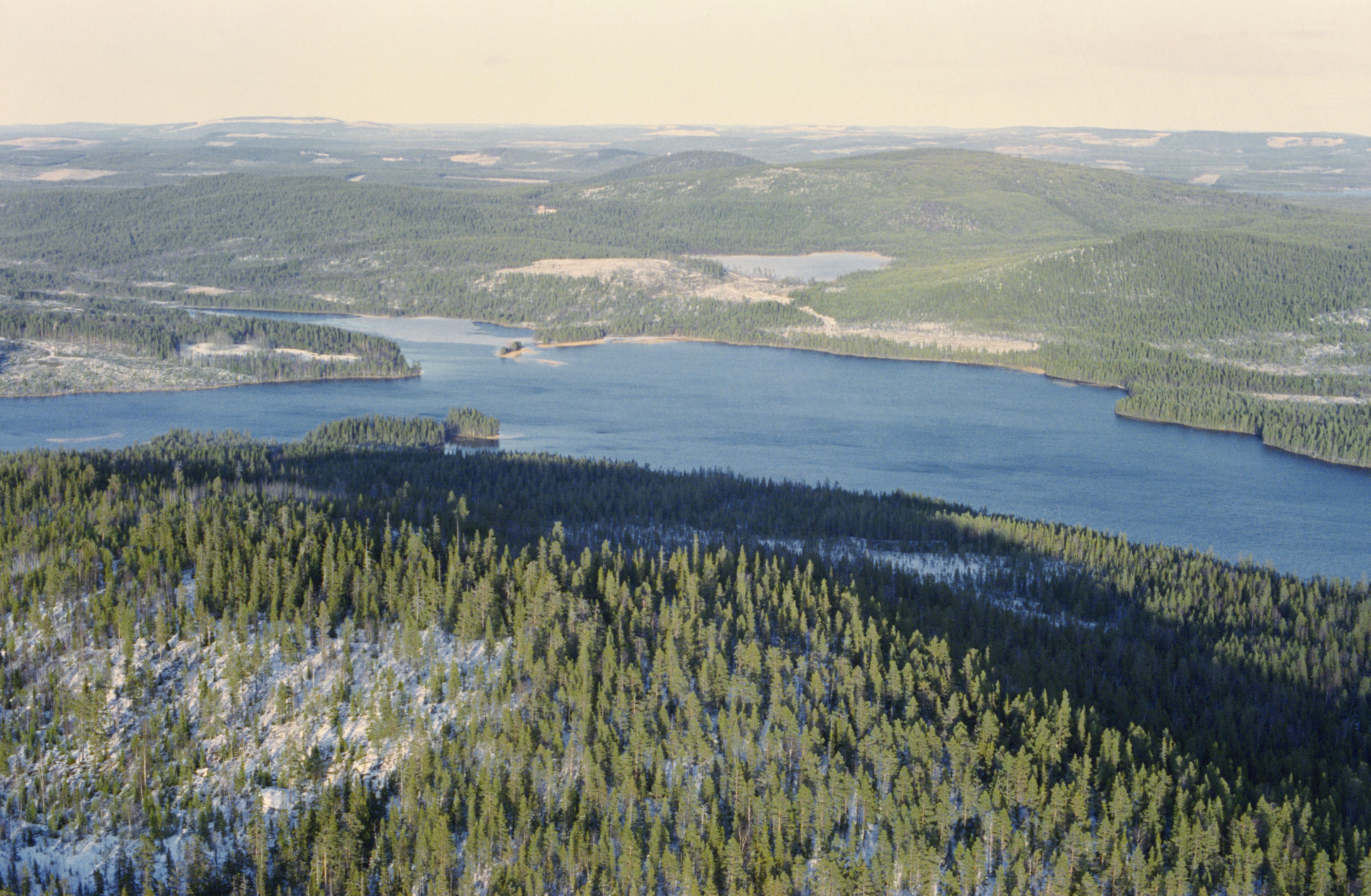 Beskrivning: Norra delen av Sämsjön. På udden till vänster om bildens mitt boplats RAÄnr Dorotea 748. Svartberget i bildens nedre del. Udden Sämsjönäs i bildens vänstra kant. Över bildens mitt gränsen mot Åsele socken. Över bildens mitt Storberget med hällmålning RAÄnr Åsele 151:1 vid Säljbergtjärnen. Bilden är tagen mot (väderstreck): NO