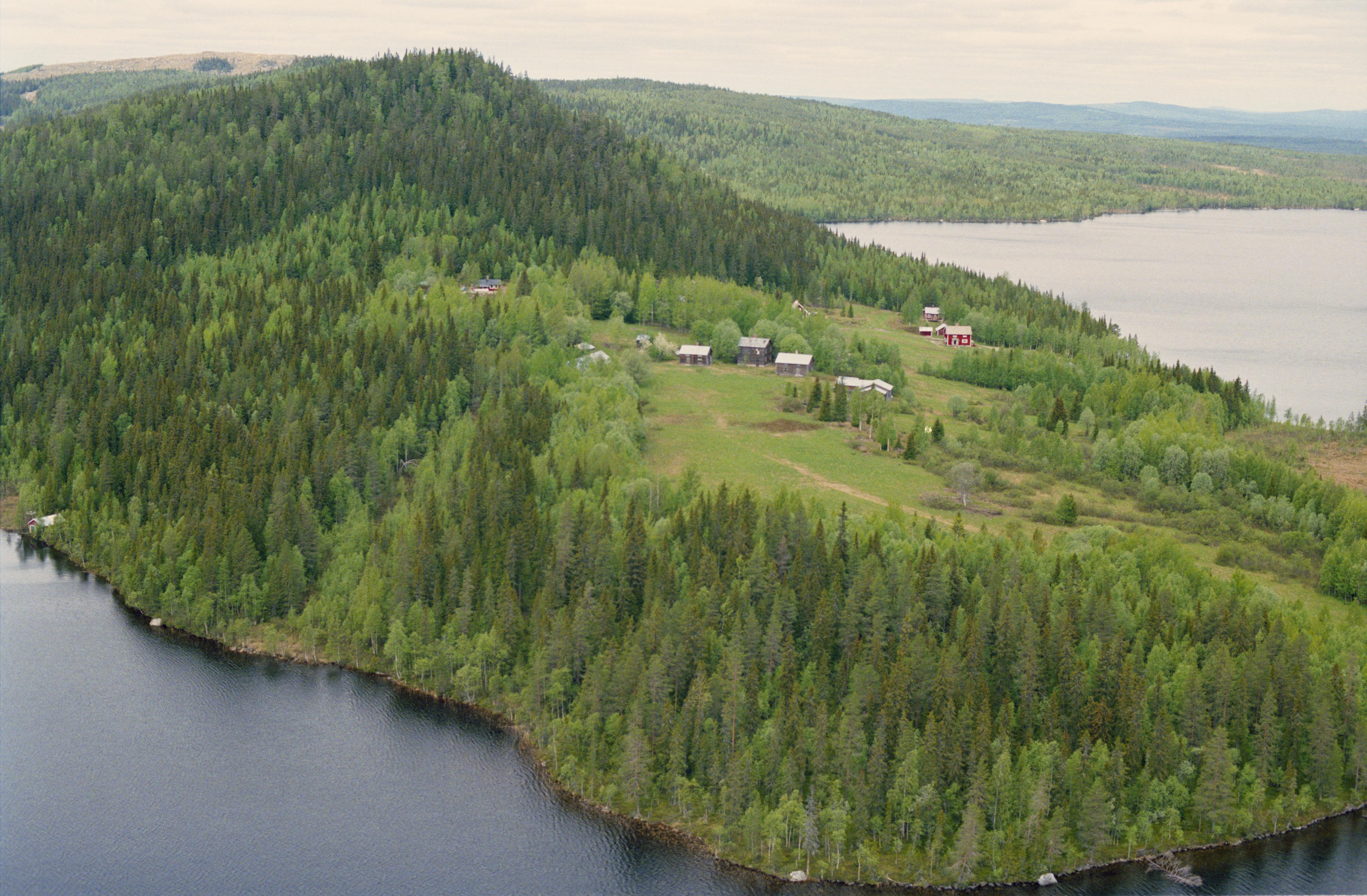 Beskrivning: Byn Väster-Storsjö under berget Hemkullen vid Storsjön. Bilden är tagen mot (väderstreck): NV