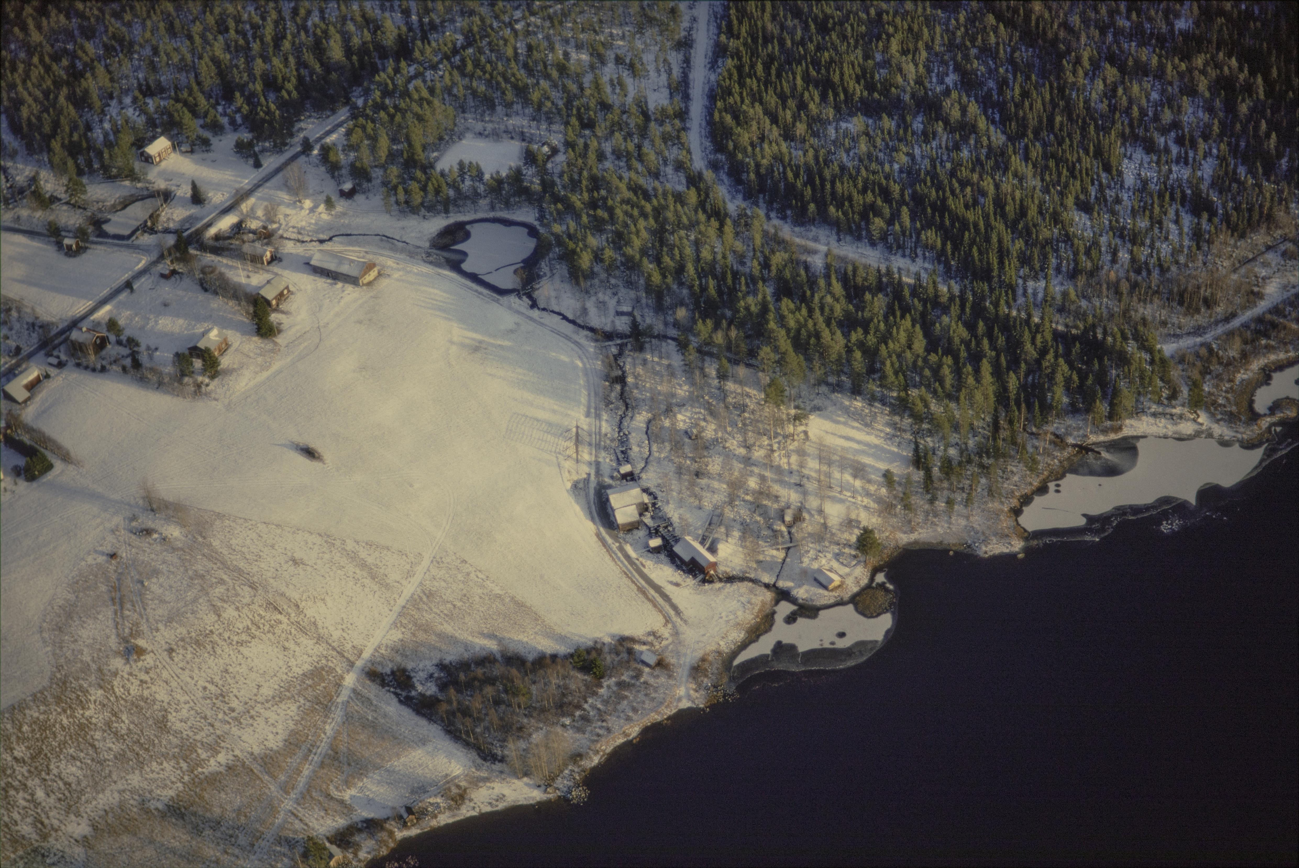 Beskrivning: Byn Torvsjö (Derhvedslaedtie) vid Torvsjön i Torvsjöåns dalgång. I bildens mitt Torvsjö kvarnar RAÄnr Åsele 20:1 vid Kvarnbäckens utlopp i Torvsjön. Bilden är tagen mot (väderstreck): OSO
