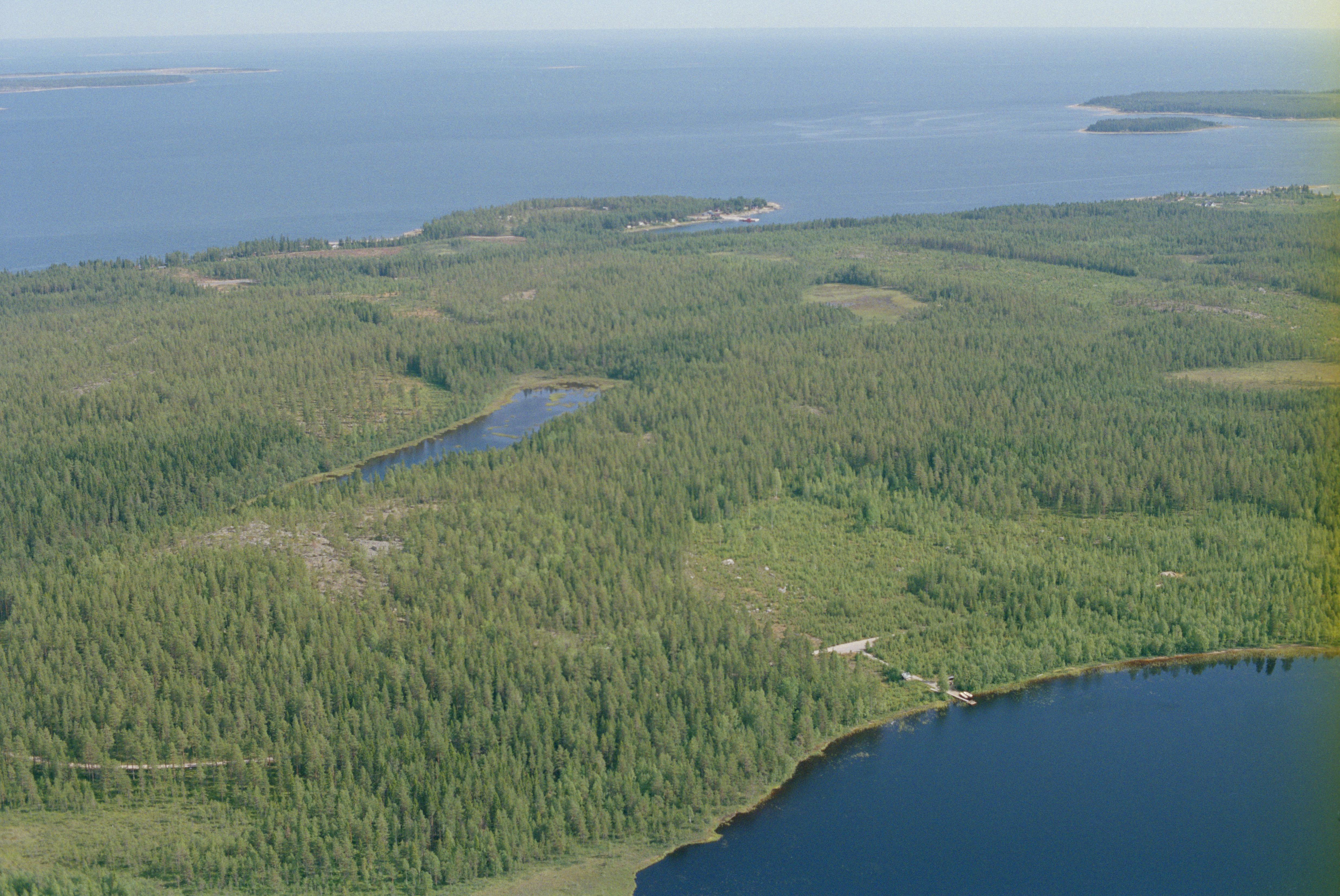 Beskrivning: Områden längs färdvägen "Arkeologstigen i Jävre" i södra delen av Jävre tätort. I bildens nedre del Degersjön, vid bildens mitt sjön Mjötjärnen. Över bildens mitt Sandholmsberget med röse RAÄnr Hortlax 74:1, 77:1, härd Hortlax 75:1-3, m.m. Bilden är tagen mot (väderstreck): Ö