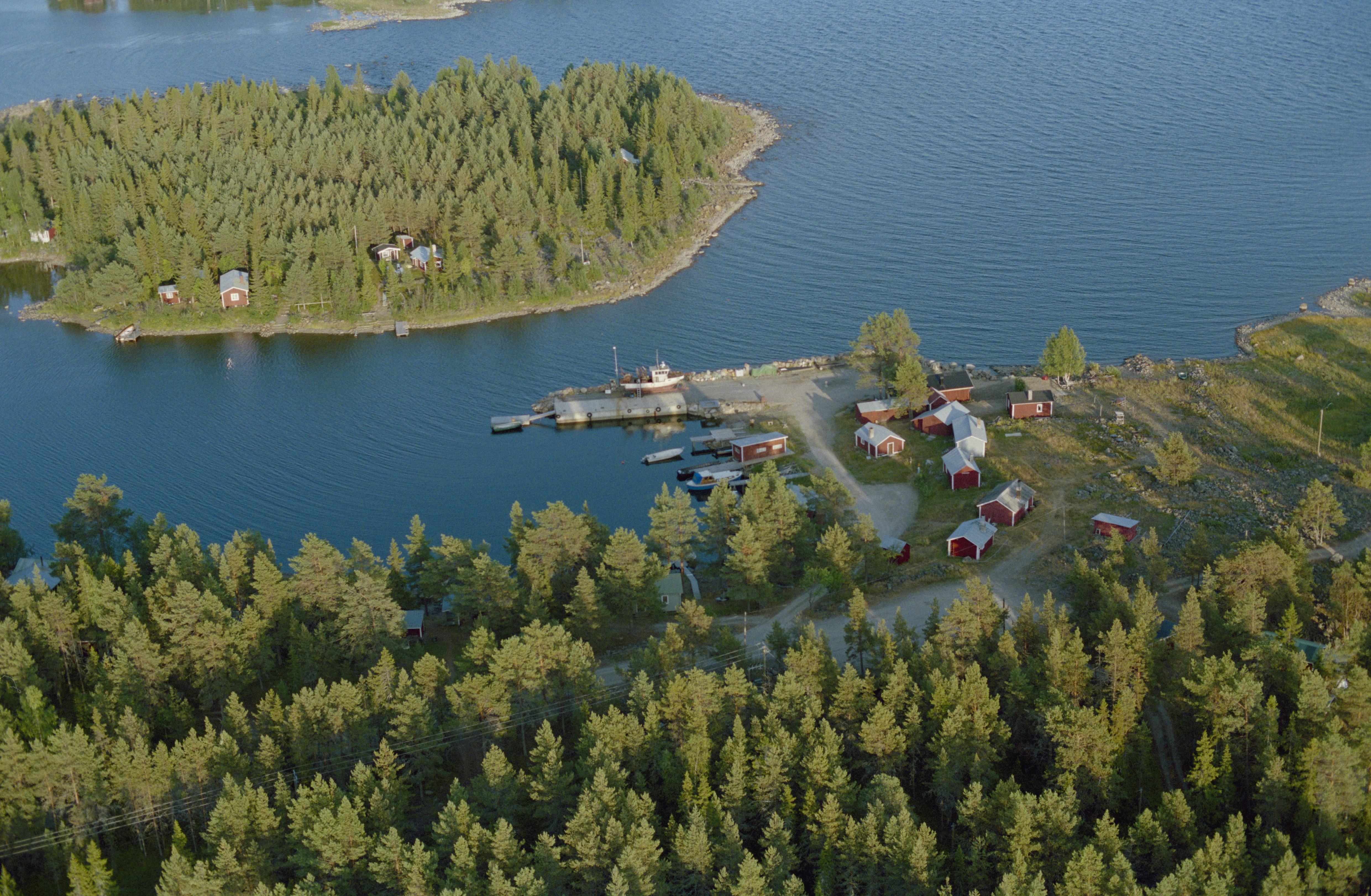 Beskrivning: Nässkatan fiskeläge och fiskehamn mellan Rånöfjärden i väst och Pålängfjärden i öst. I fiskeläget båtlänning / gistgård RAÄnr Nederkalix 428:1-3, Nederkalix 428:1, m.m. Ön Nässkatagrundet i bildens övre del. Bilden är tagen mot (väderstreck): OSO