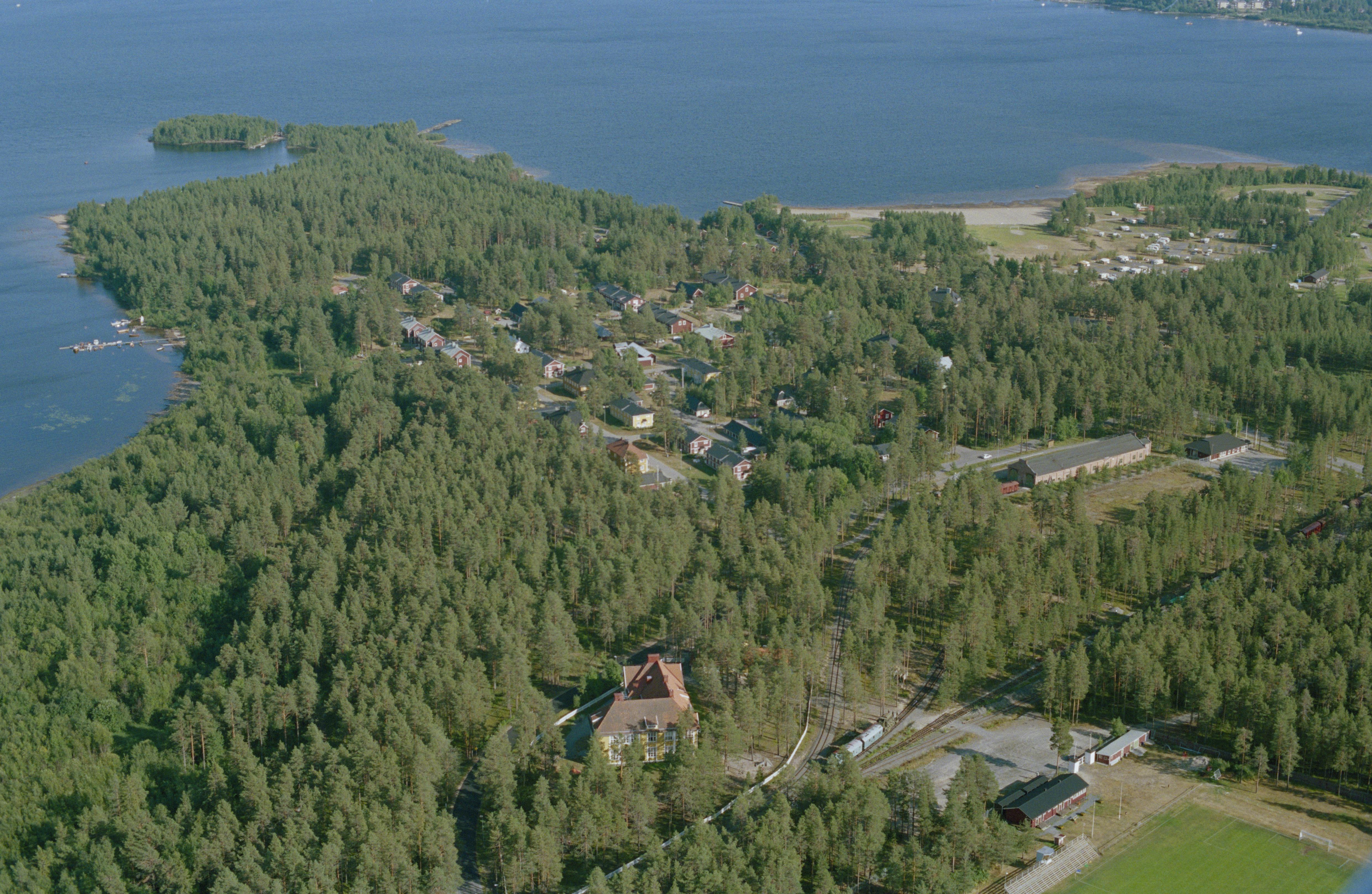 Beskrivning: Industriorten Karlsvik vid Lulefjärden i Luleälven. Vid bildens mitt lämningar efter sågverk (ångsåg), järnverk, träsliperi m.m. RAÄnr Nederluleå 627:1. Bilden är tagen mot (väderstreck): SO