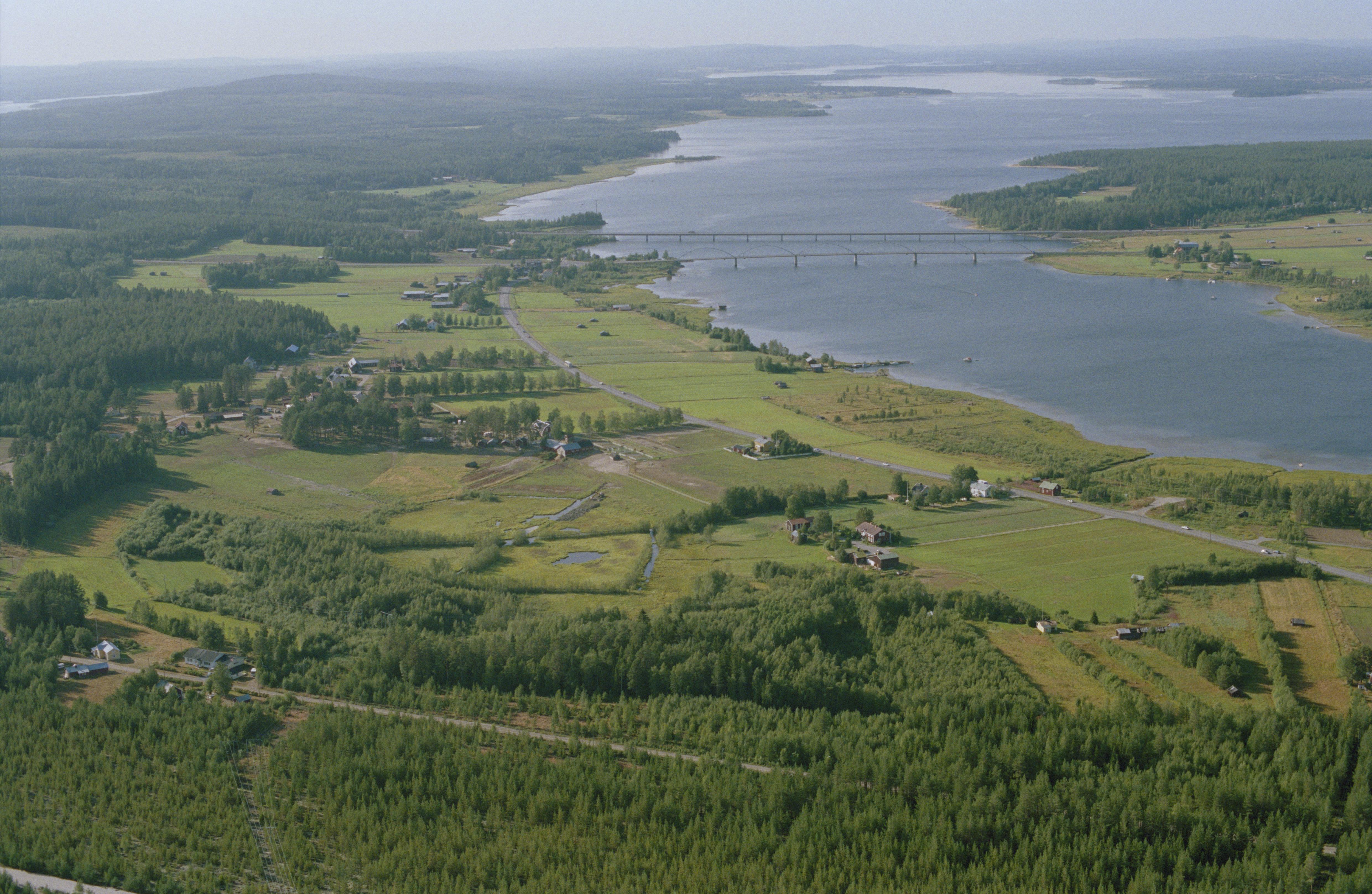 Beskrivning: Gäddviks by vid Gäddvikssundet i Luleälven. Gammelstadsfjärden uppe till höger. Över bildens mitt bytomt RAÄnr Nederluleå 155:1, m.m. Bilden är tagen mot (väderstreck): VNV