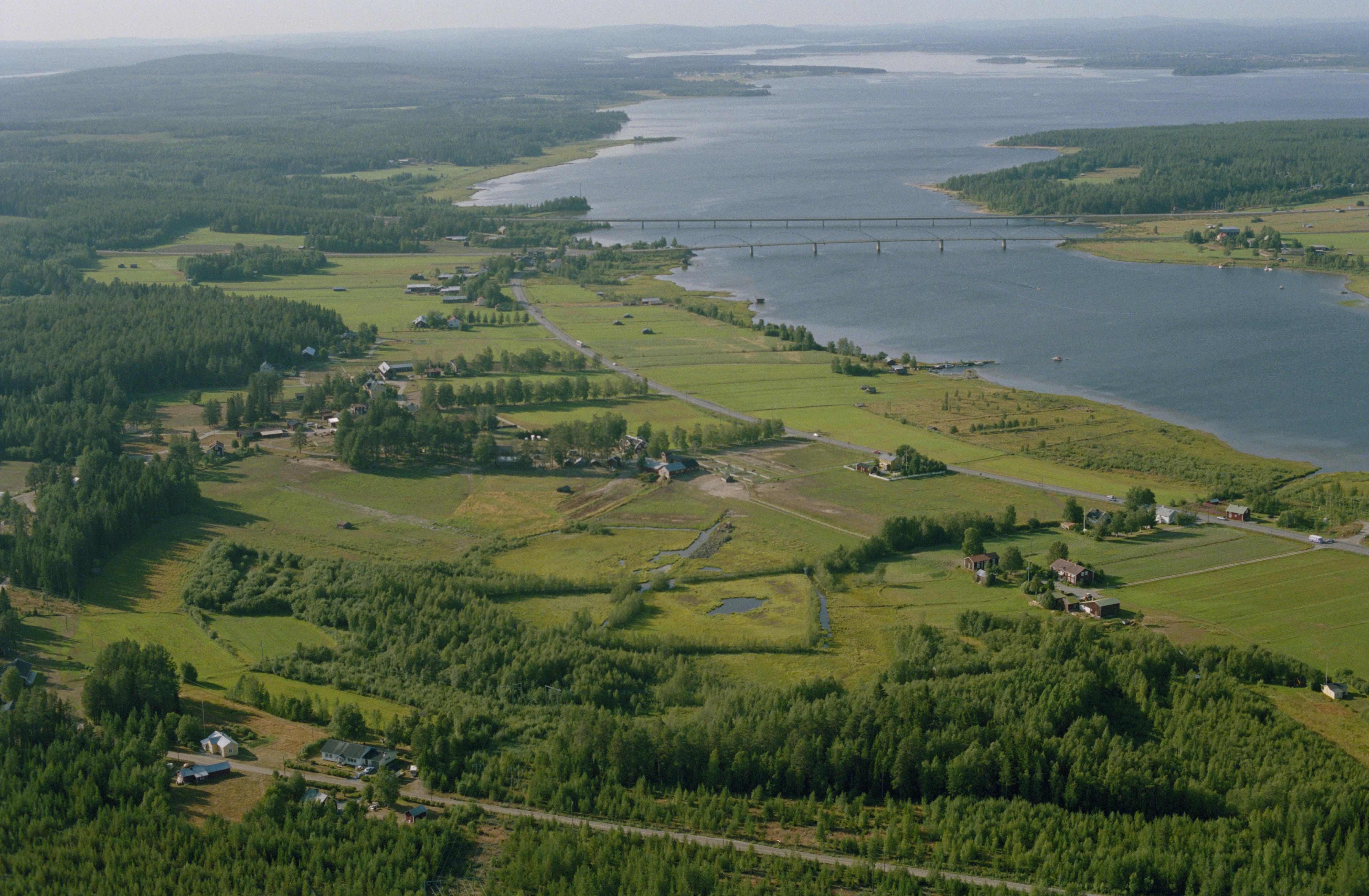 Beskrivning: Gäddviks by vid Gäddvikssundet i Luleälven. Gammelstadsfjärden uppe till höger. Över bildens mitt bytomt RAÄnr Nederluleå 155:1, m.m. Bilden är tagen mot (väderstreck): VNV