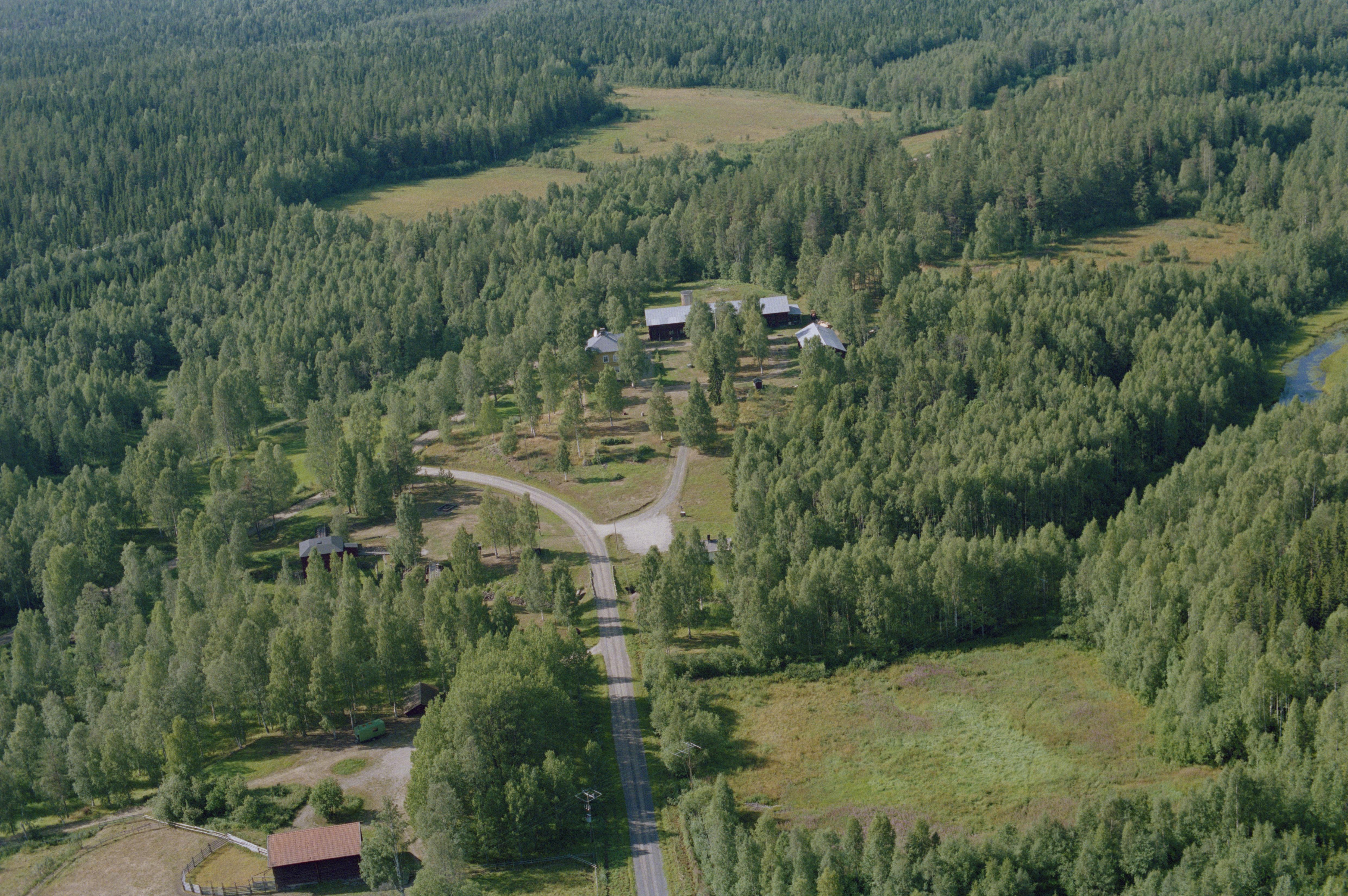 Beskrivning: Rosfors bruk och naturreservat vid Rosån. Hyttlämning RAÄnr Norrfjärden 29:1. Rofors herrgård i bildens övre del. Bilden är tagen mot (väderstreck): VNV
