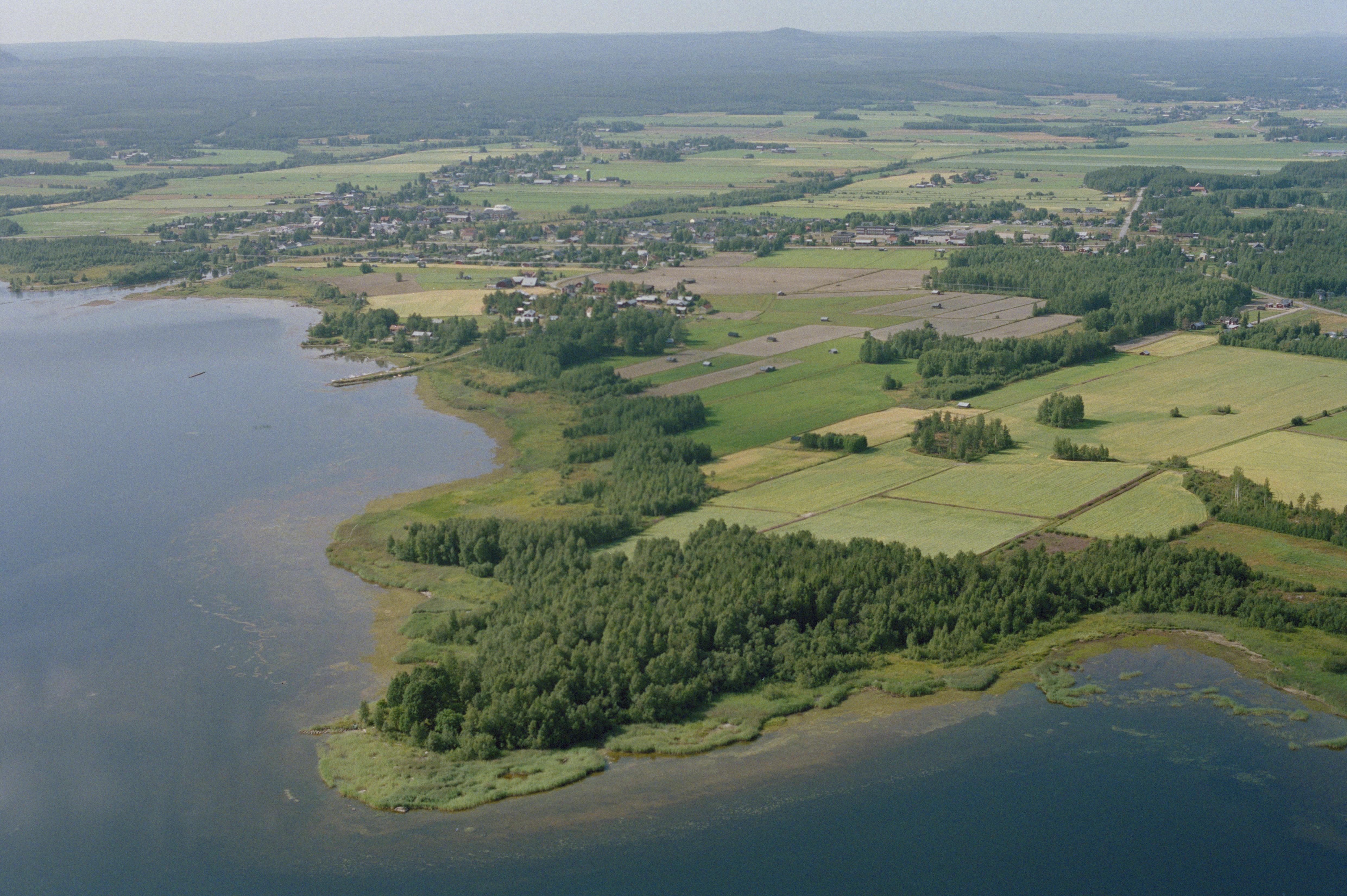 Beskrivning: Lillpiteåns dalgång (Lillpitedalen). I bildens nedre del bytomt RAÄnr Piteå socken 86:1, 87:1, m.m. i byn Ryggskatan. Uppe till vänster Lillpiteälvens utlopp i Svensbyfjärden och byn Roknäs. Till höger vid bildens mitt områdena Storåkern, Lillåkern och Sjulnäs. Bilden är tagen mot (väderstreck): VNV