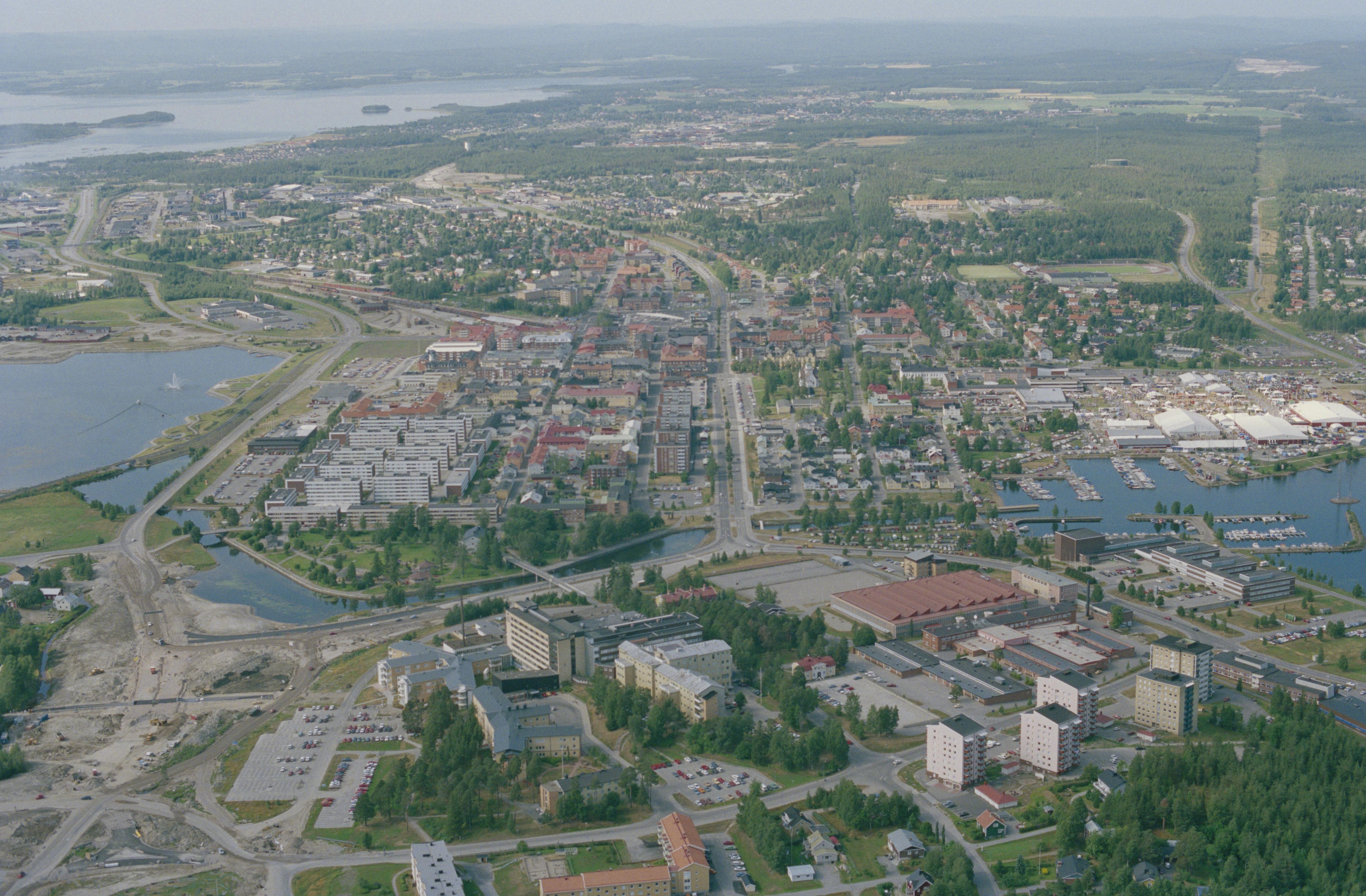 Beskrivning: Piteå stad / tätort. Vid bildens mitt stadslager RAÄnr Piteå socken 226:1. Piteå Stads kyrka vid bildens mitt. Under bildens mitt gränsen mellan socknen Piteå stad (i bildens övre del) och Piteå socken (i bildens nedre del). Bilden är tagen mot (väderstreck): NV