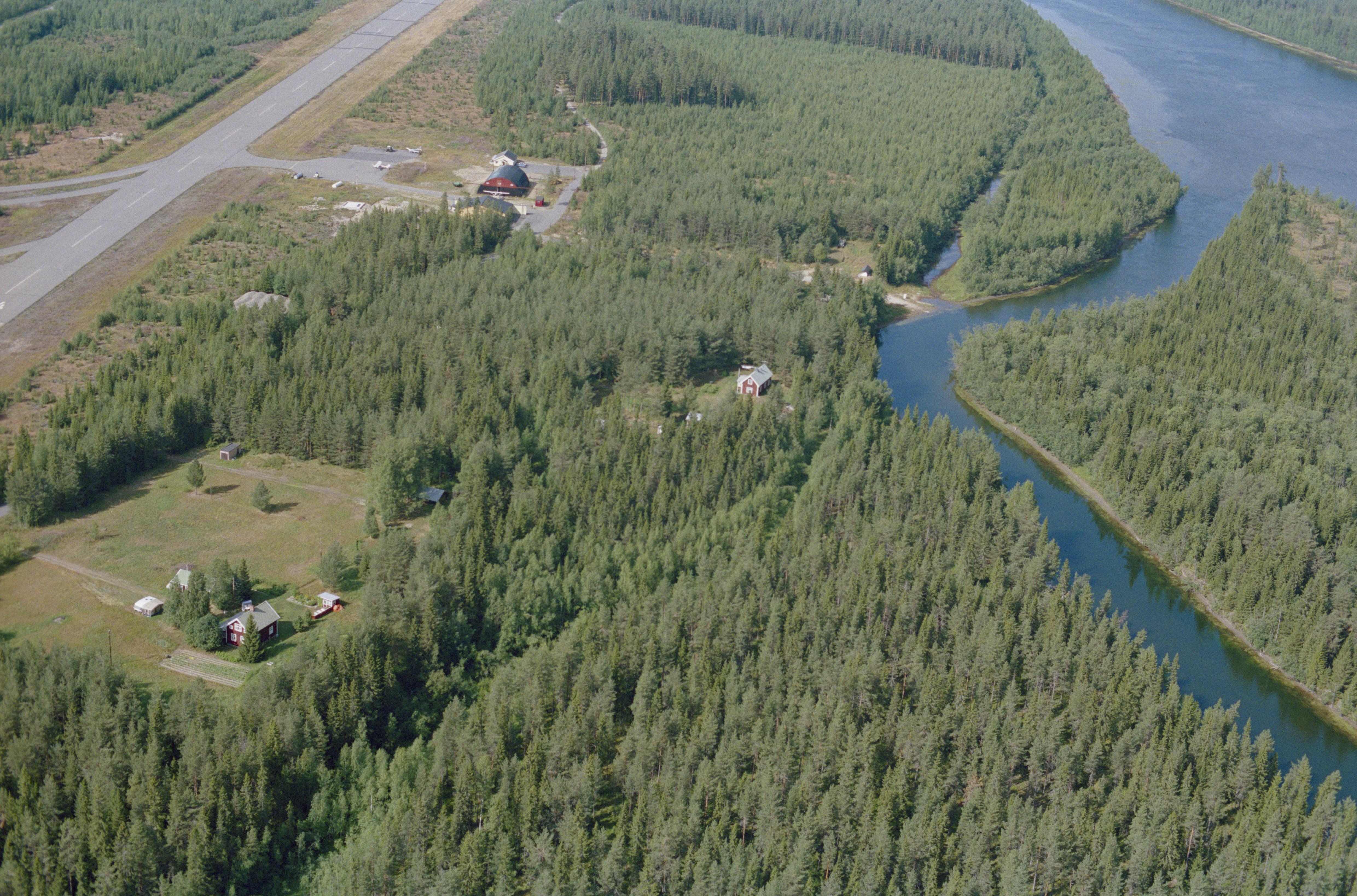 Beskrivning: Kyrkbyn vid Piteälven. I skogen till vänster i bildens nedre kant bytomt RAÄnr Piteå socken 139:1 och i skogen vid bildens mitt bytomt Piteå socken 362:1. Uppe till vänster Piteå flygfält. Bilden är tagen mot (väderstreck): NV