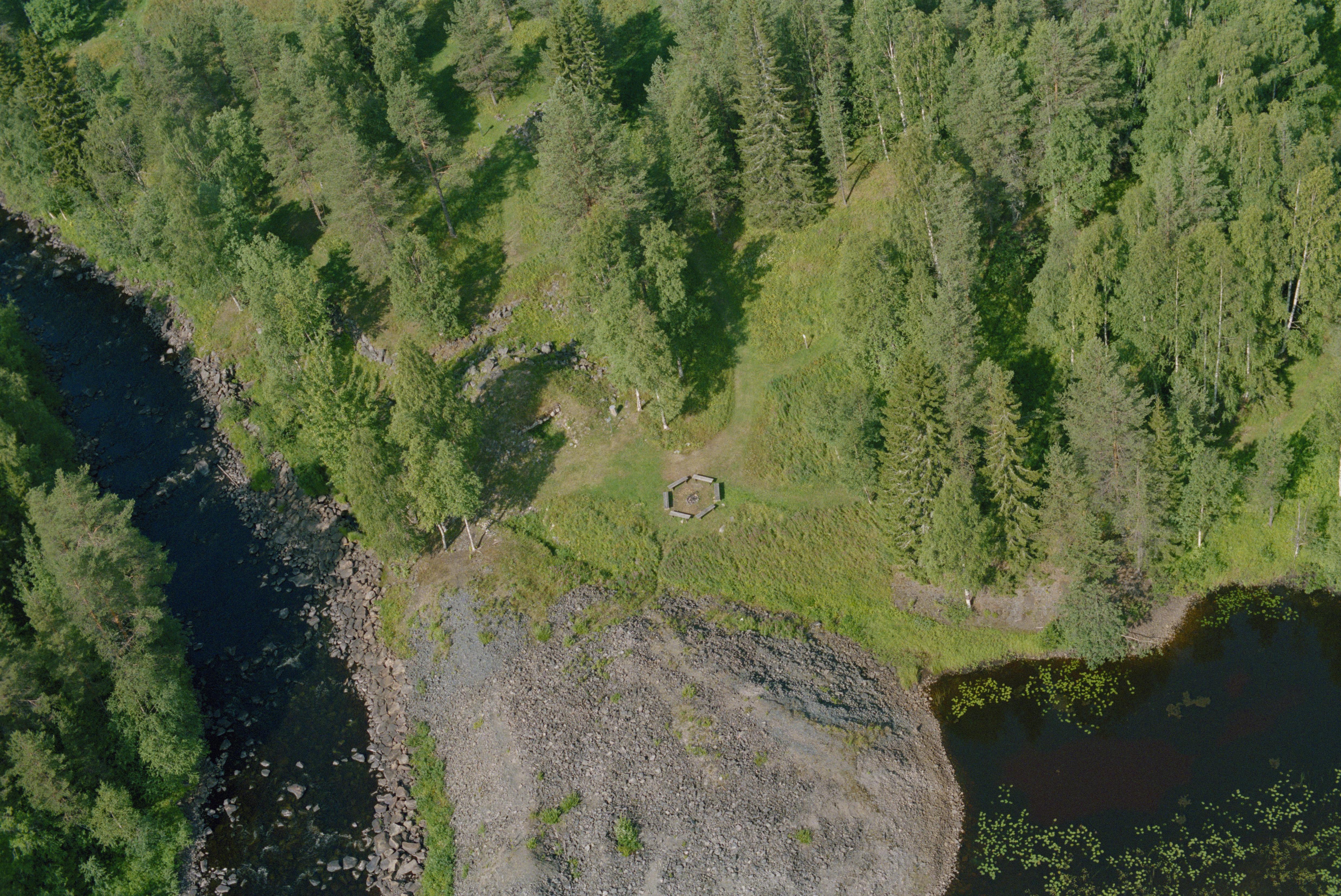 Beskrivning: Avafors bruk vid Masugnsforsen och Masugnsviken i Vitån. Bruks- och hyttlämningar RAÄnr Råneå 35:1-2. Bilden är tagen mot (väderstreck): NNV