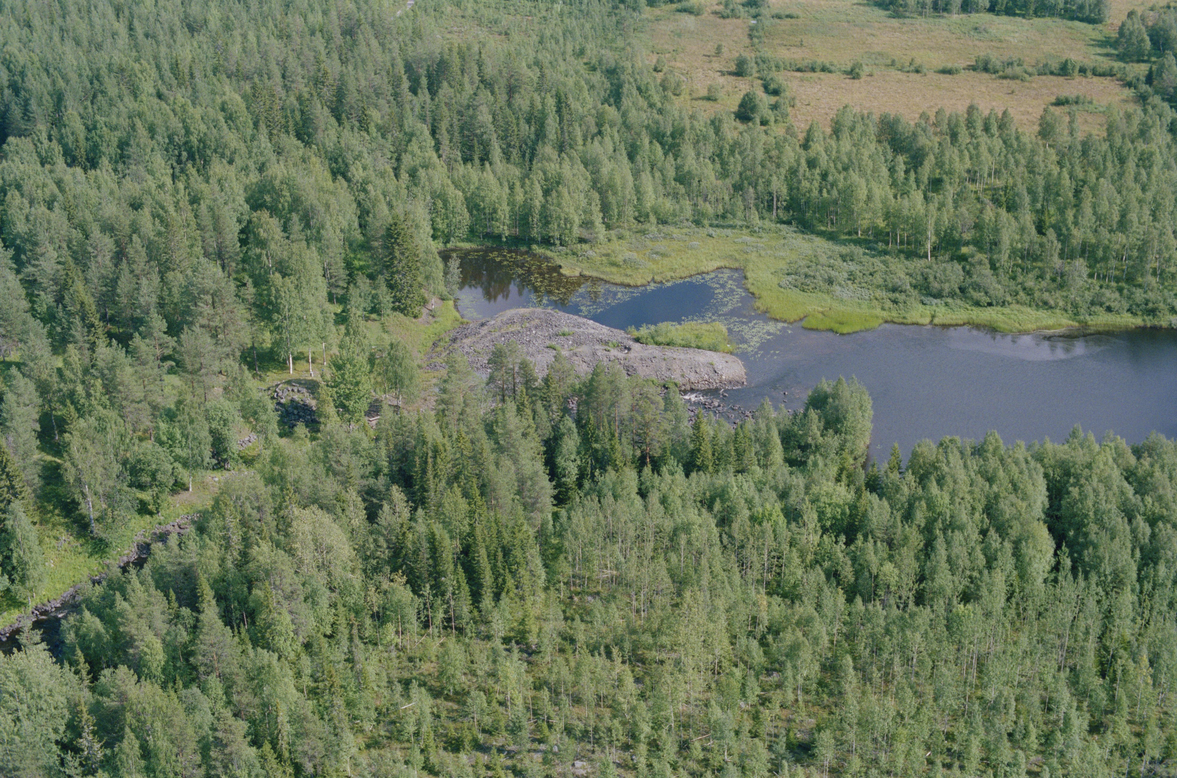 Beskrivning: Avafors bruk vid Masugnsforsen och Masugnsviken i Vitån. Bruks- och hyttlämningar RAÄnr Råneå 35:1-2 vid bildens mitt. Bilden är tagen mot (väderstreck): Ö