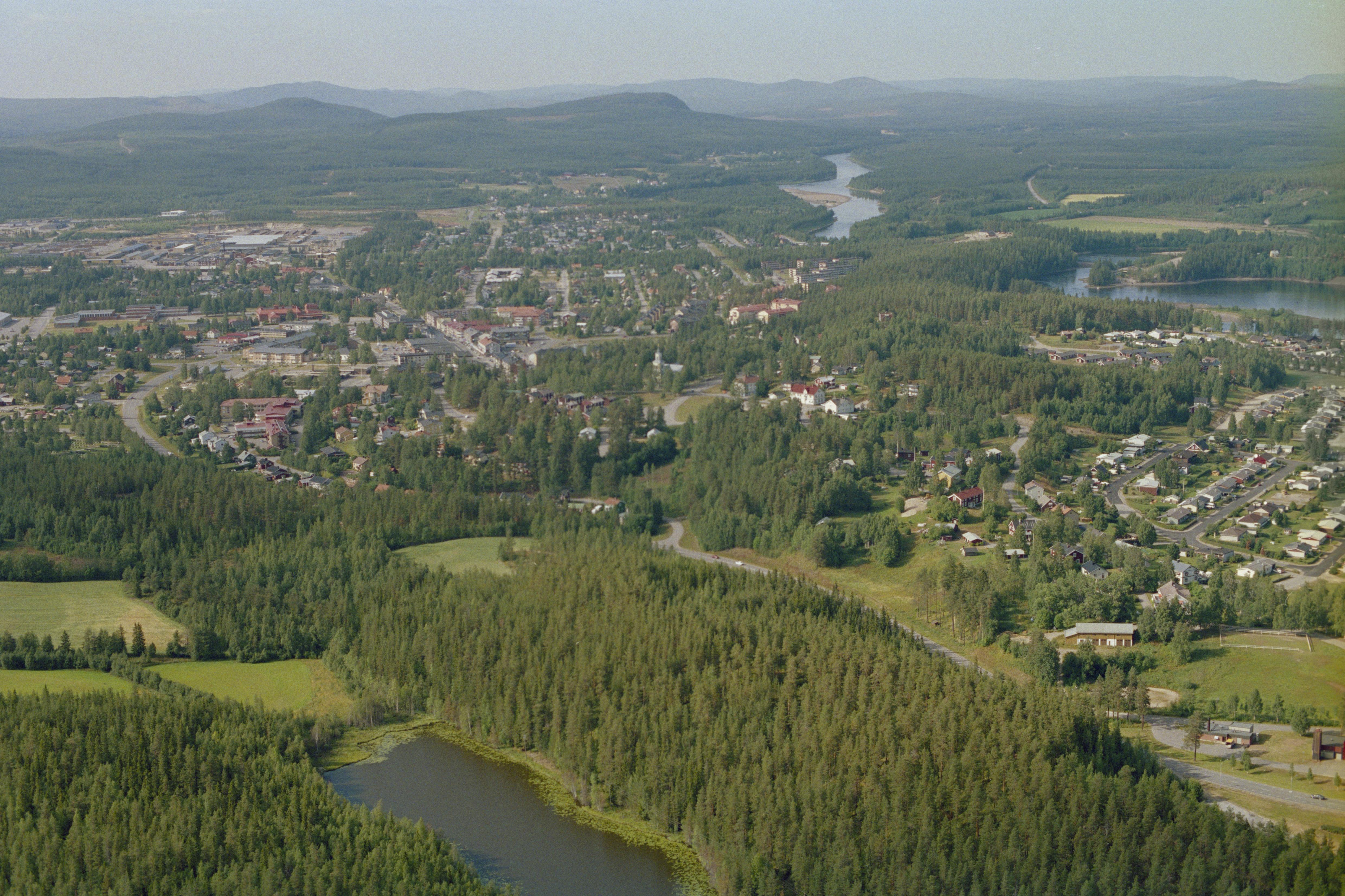 Beskrivning: Älvsbyn tätort och kyrkby vid Piteälven. Till höger under bildens mitt bytomt RAÄnr Älvsby 151:1, 153:1 m.fl. Älvsby kyrka vid bildens mitt. Bilden är tagen mot (väderstreck): NV