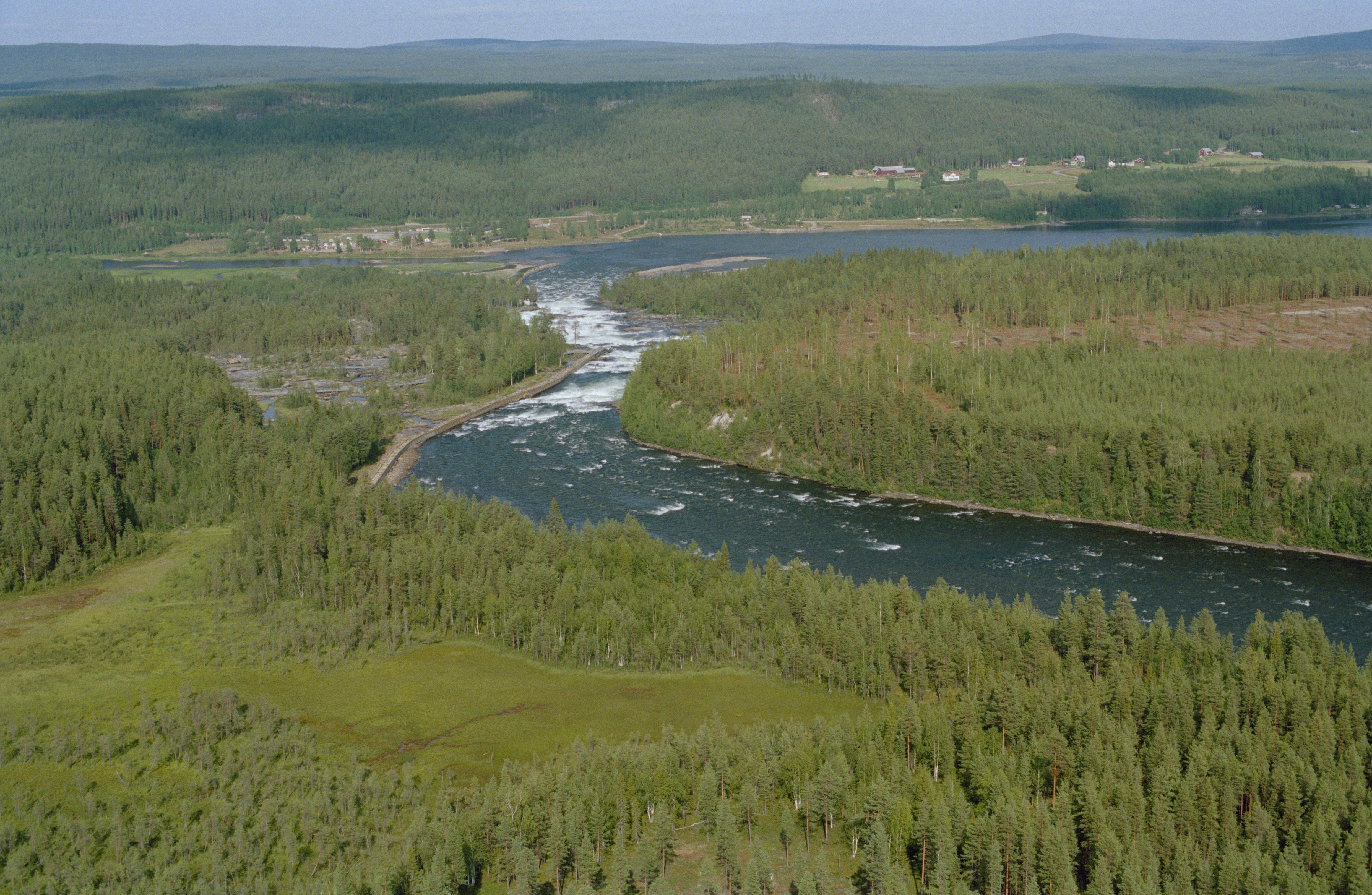 Beskrivning: Storforsen där Piteälven och Varjisån möts i sjön Bredselet. Till vänster om bildens mitt boplats RAÄnr Älvsby 952:1, 953:1, m.m. i området Döda fallet. Storforsens naturreservat. Bilden är tagen mot (väderstreck): NO