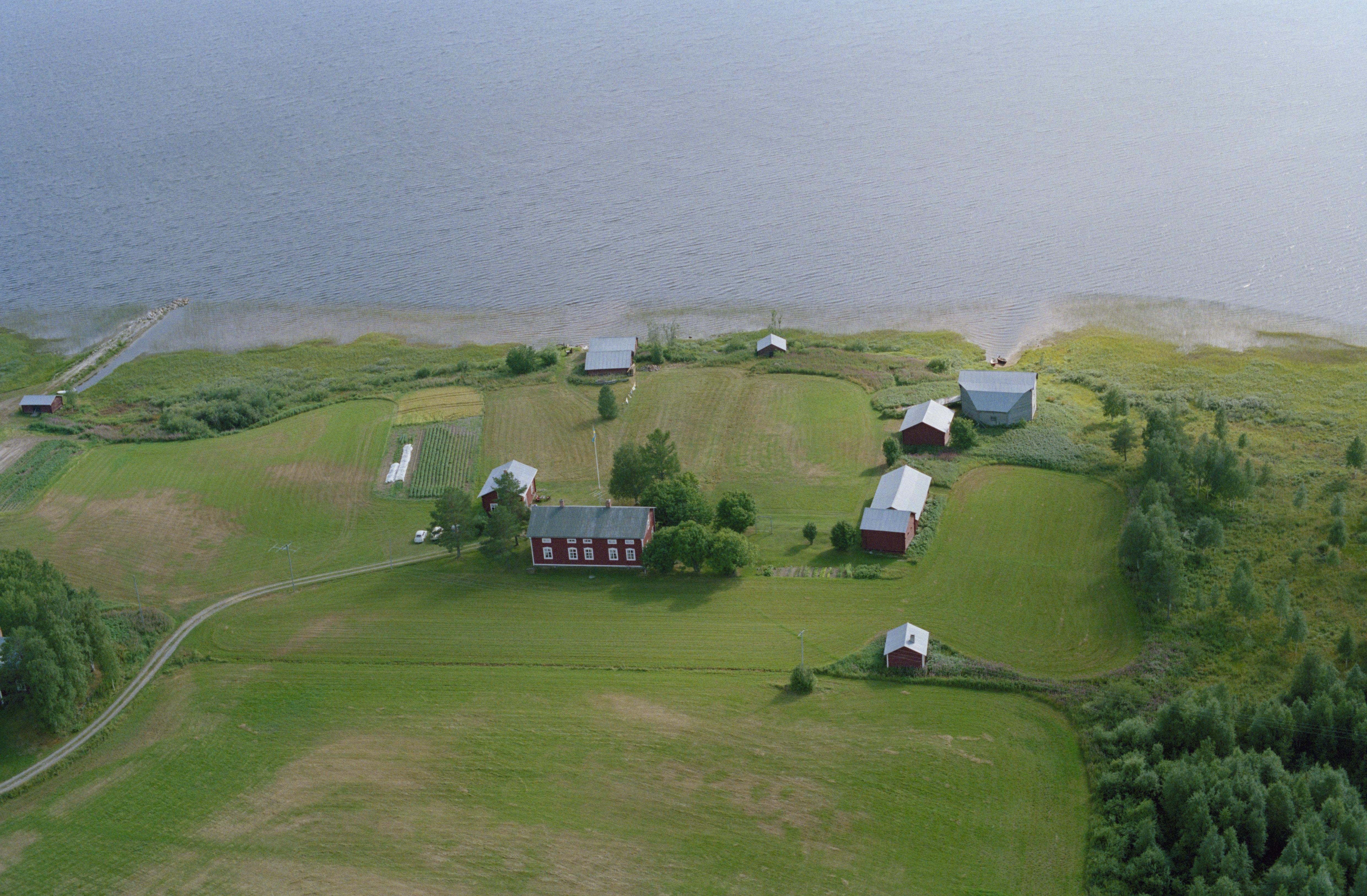 Beskrivning: Manjärvs by vid Vistån i norra delen av sjön Manjärv. Vid bildens mitt bytomt RAÄnr Älvsby 906:1-2. Bilden är tagen mot (väderstreck): S