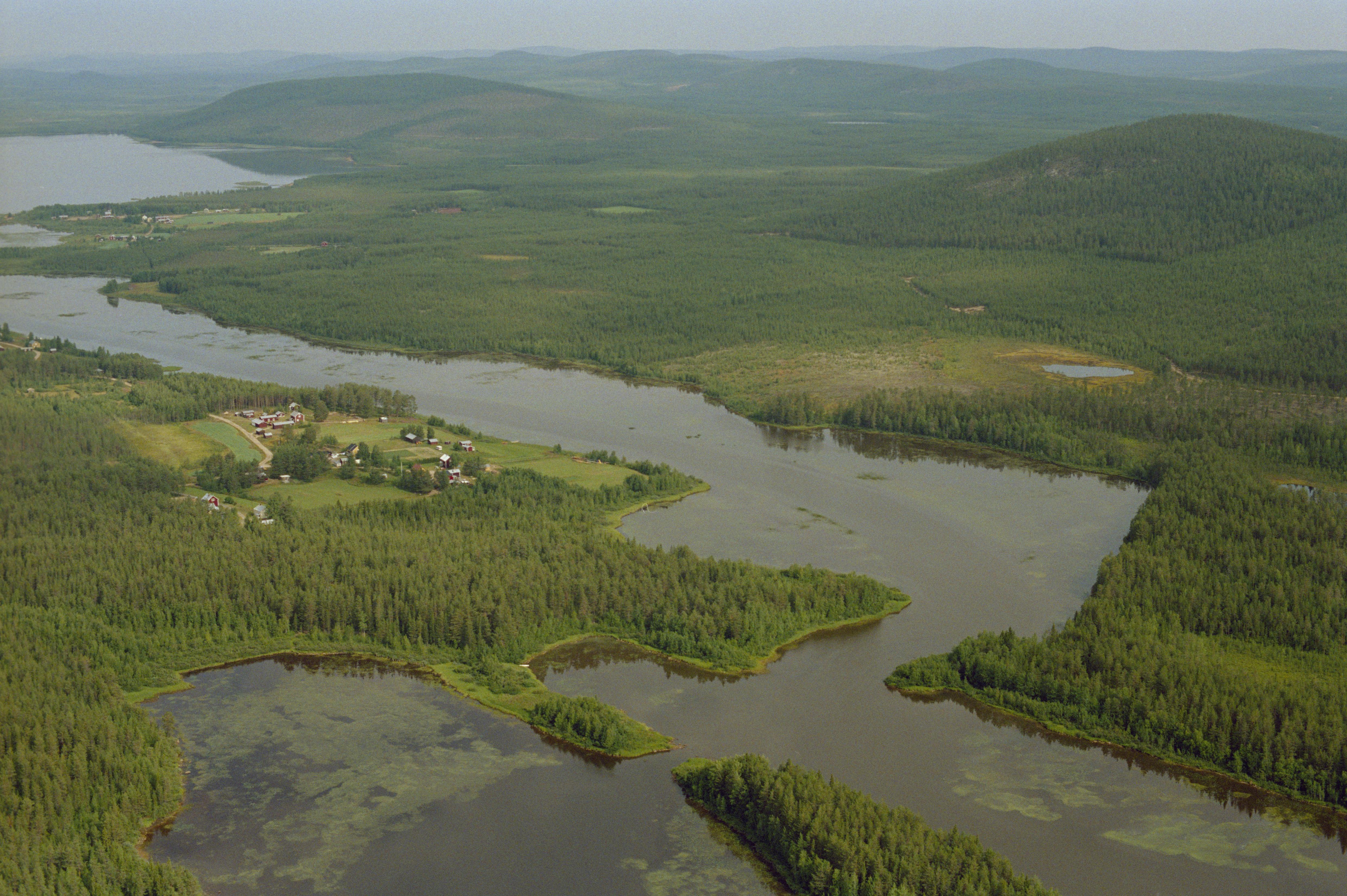 Beskrivning: Sjöområdet Yttre Lansjärv sydost i sjön Övre Lansjärv. Under bildens mitt Lillsundet med boplats RAÄnr Överkalix 19:1. Till vänster i bildens övre del skymtar Övre Lansjärv. Byn Lillsundet till vänster om bildens mitt. Bilden är tagen mot (väderstreck): NNO