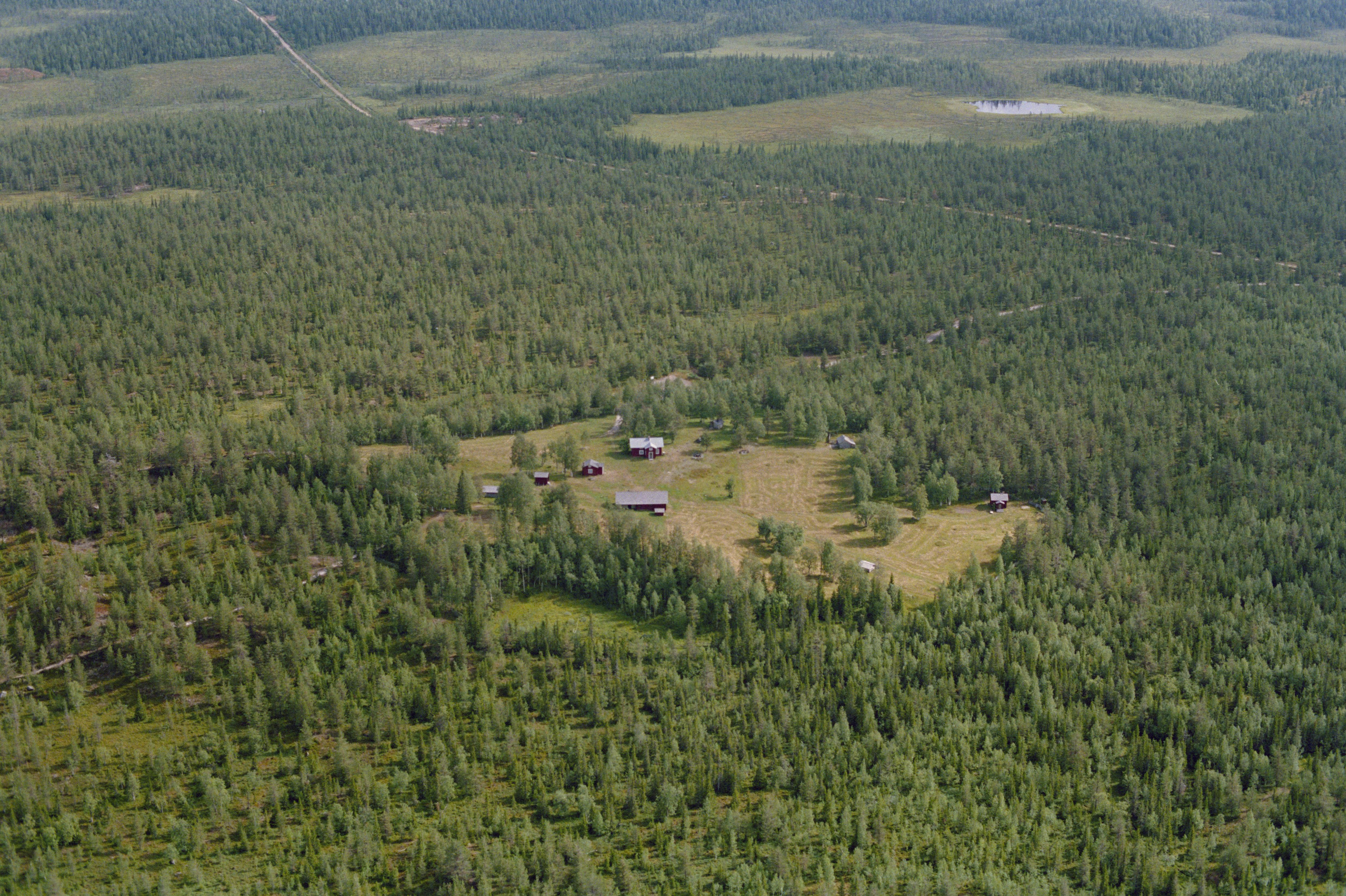 Beskrivning: Rikti-Dockas, ett ensamliggande, skogssamiskt nybygge från 1800-talet. I området begravningsplats / sommargravar RAÄnr Överkalix 73:1-4. Bilden är tagen mot (väderstreck): Ö